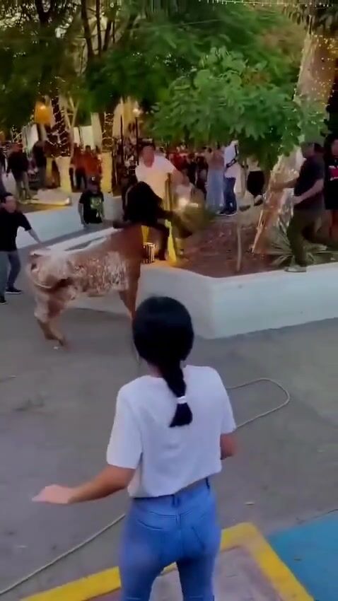 Im sorry in advance. Cow gores Young Woman who just shouldn't have been there