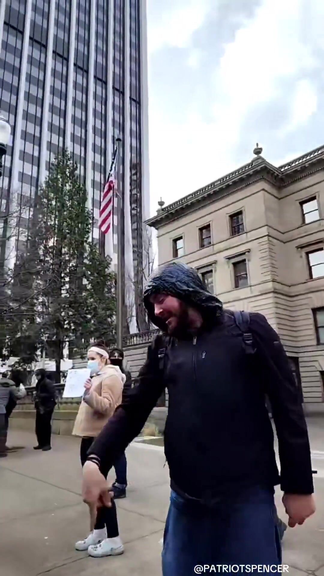 As she's getting out of the vehicle, she states, "I don't want my coochie hanging out!"