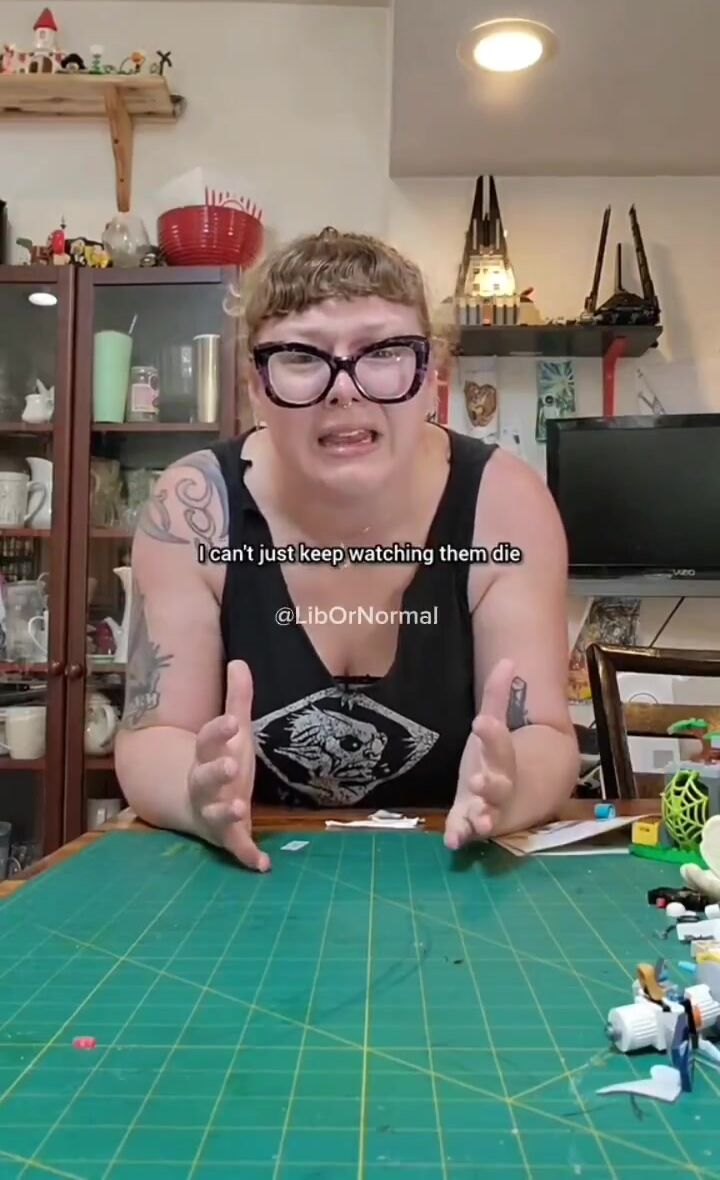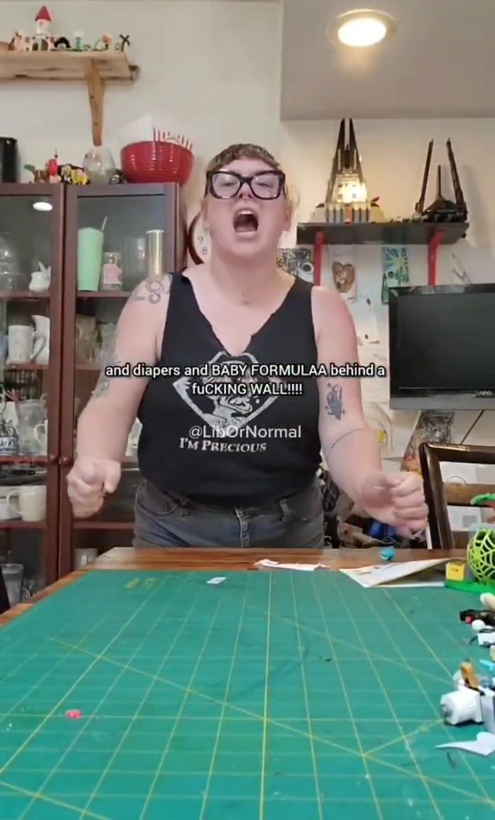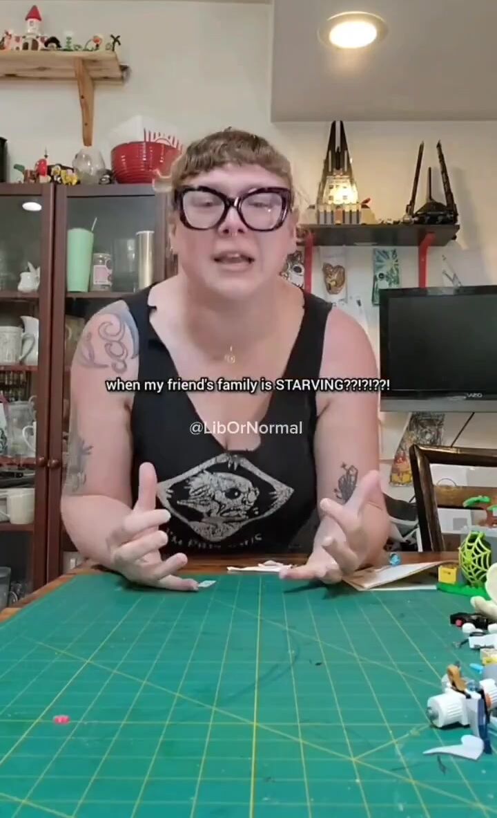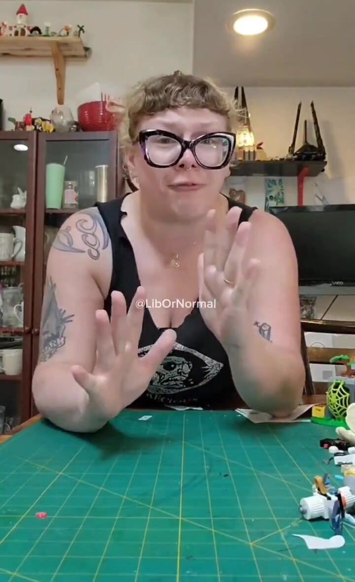 Where do i start? The arm pit hair has to addressed. FUCKEN remove it you man woman. The glasses are the worst shape I've ever seen. Overloading shelves with crappy trinkets is a sure fire way of spotting the mentally ill.