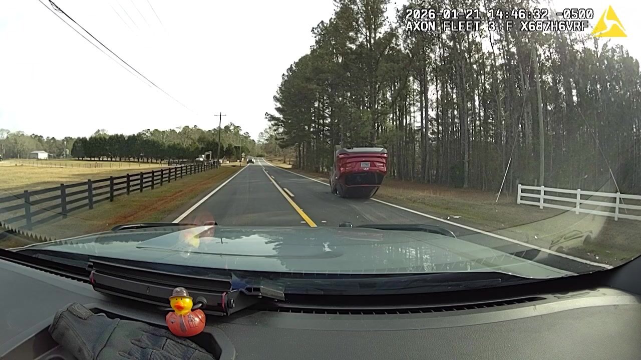 Dashcam video captured the moment a stolen SUV, driven by a 17-year-old, barreled through a Georgia residential area and flipped in a rollover crash after leading deputies on a 115-mph chase.