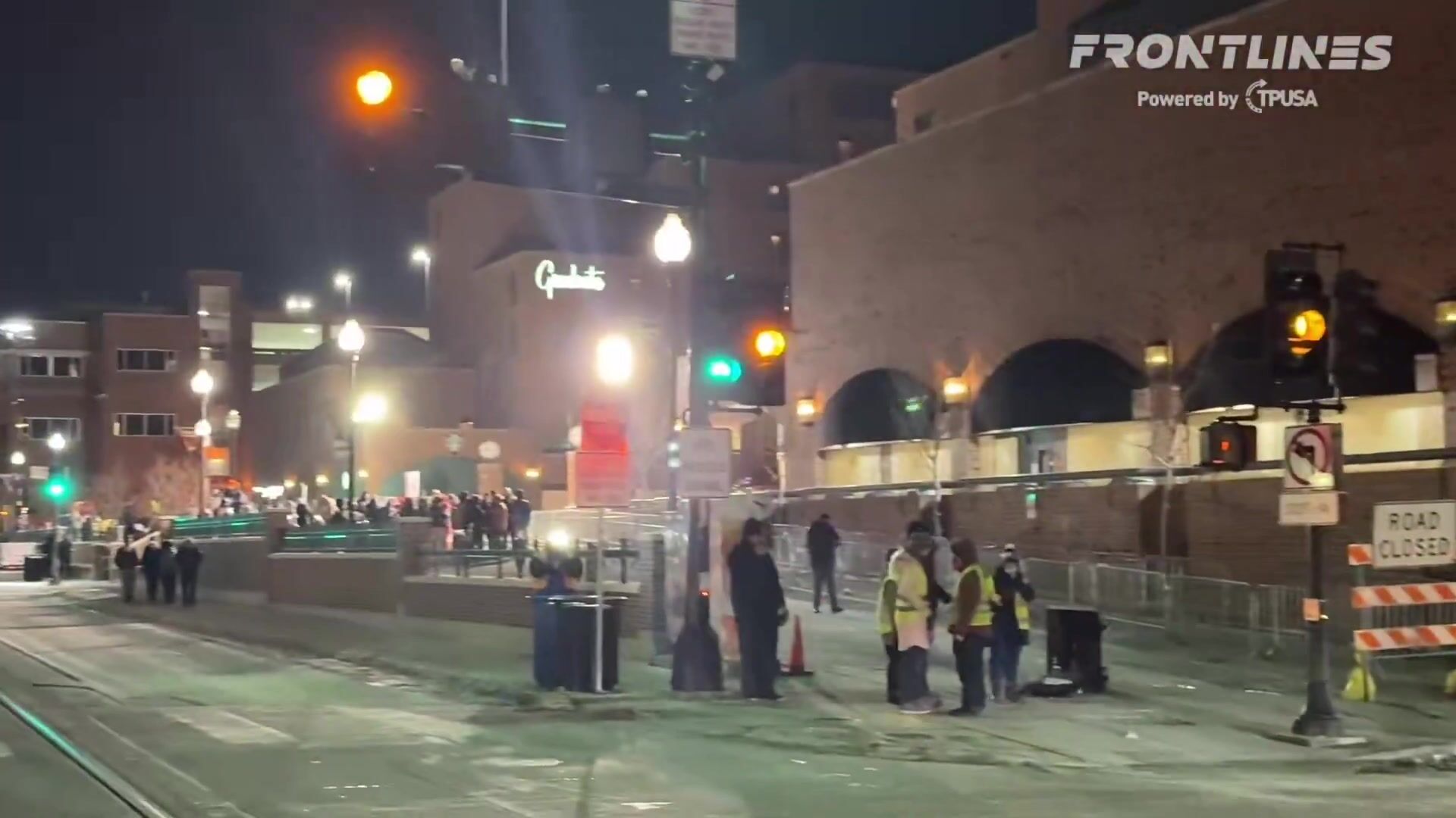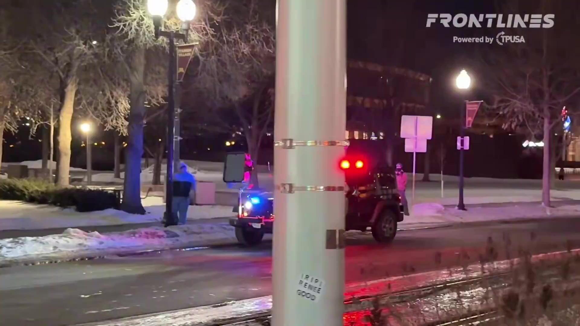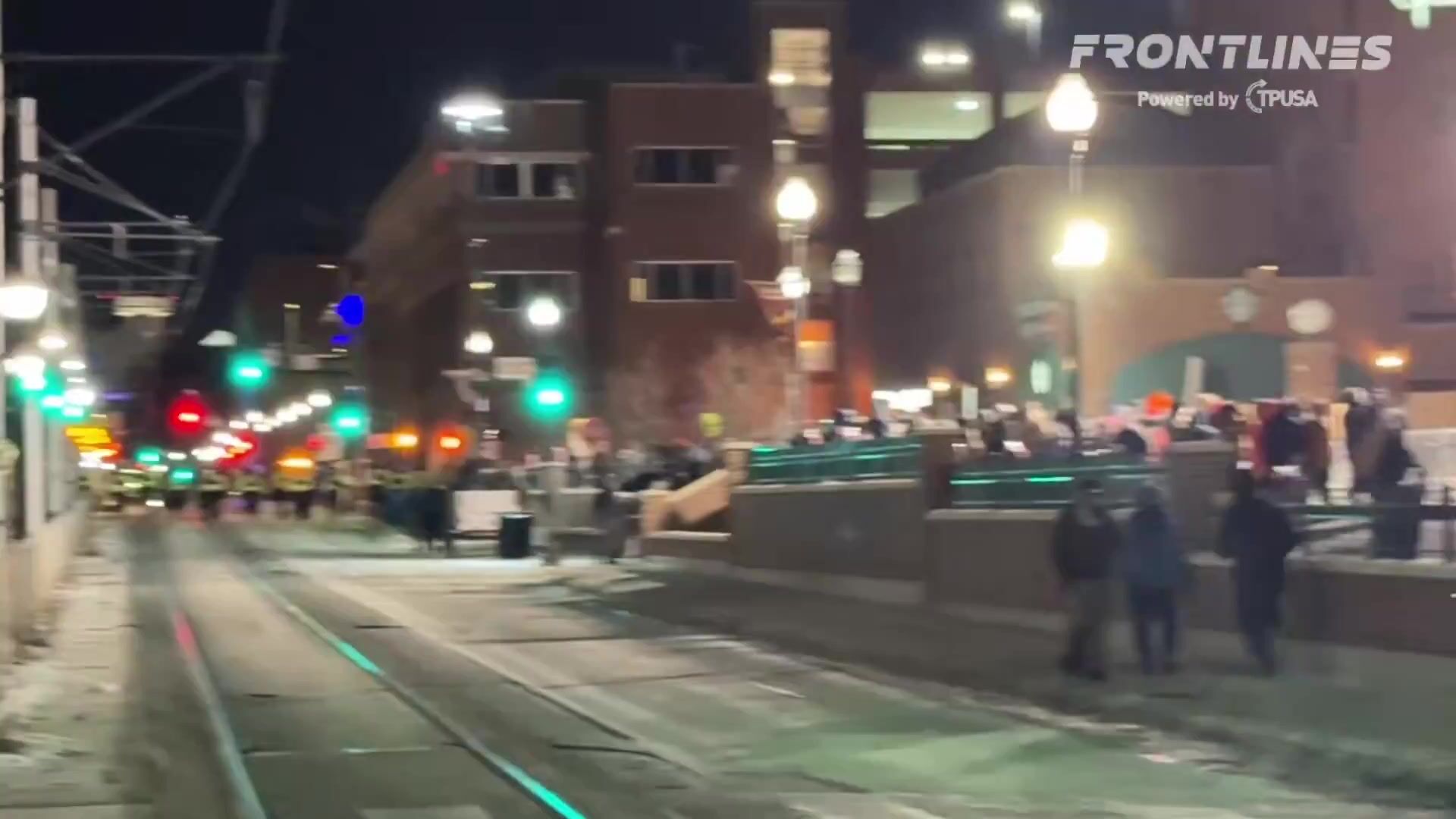 Police ordering crowd to leave after protesters pushed barricades outside Graduate Hotel.