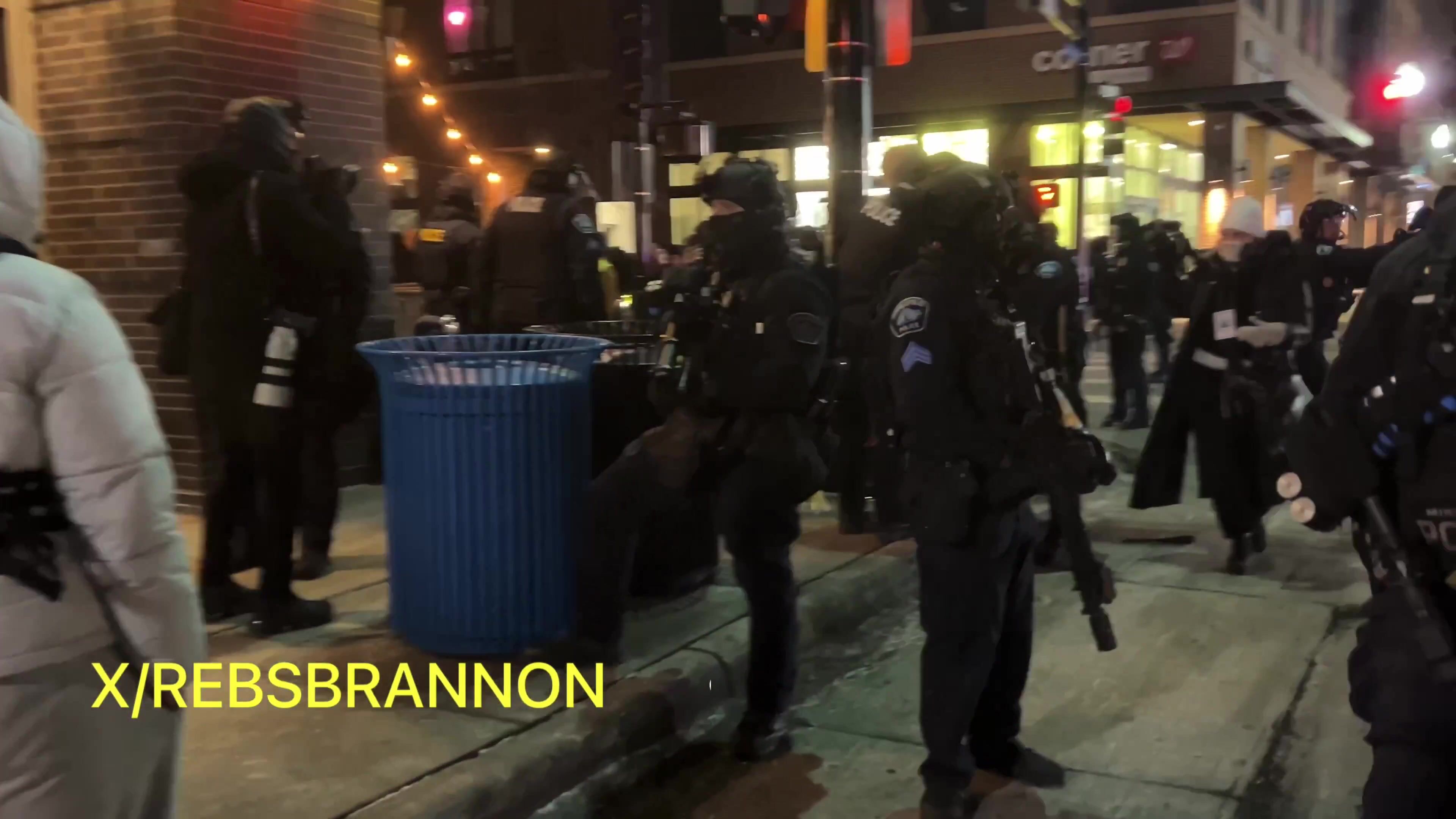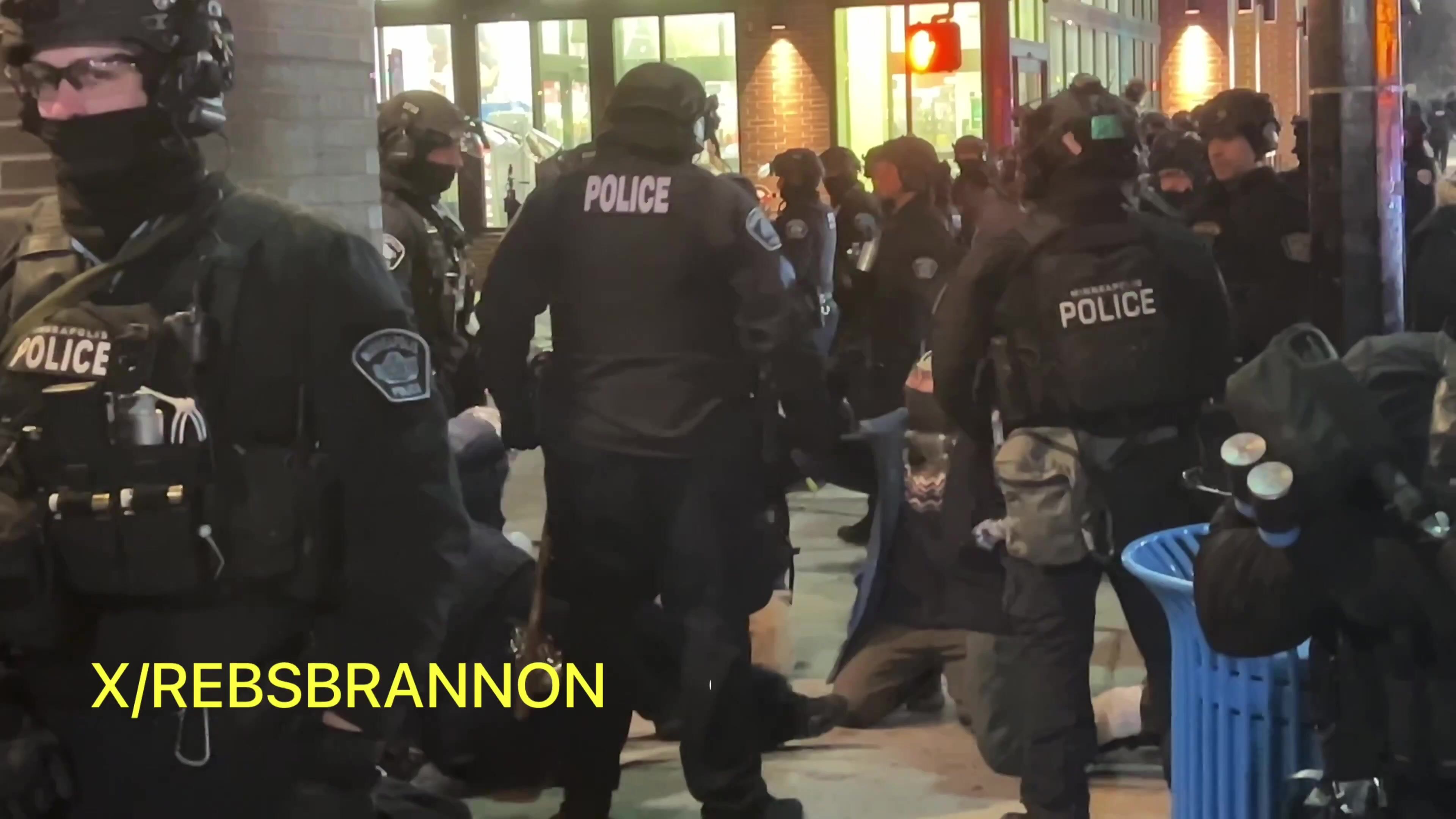 An hour after an unlawful assembly was declared, Minneapolis Police finally start making arrests in full riot gear.