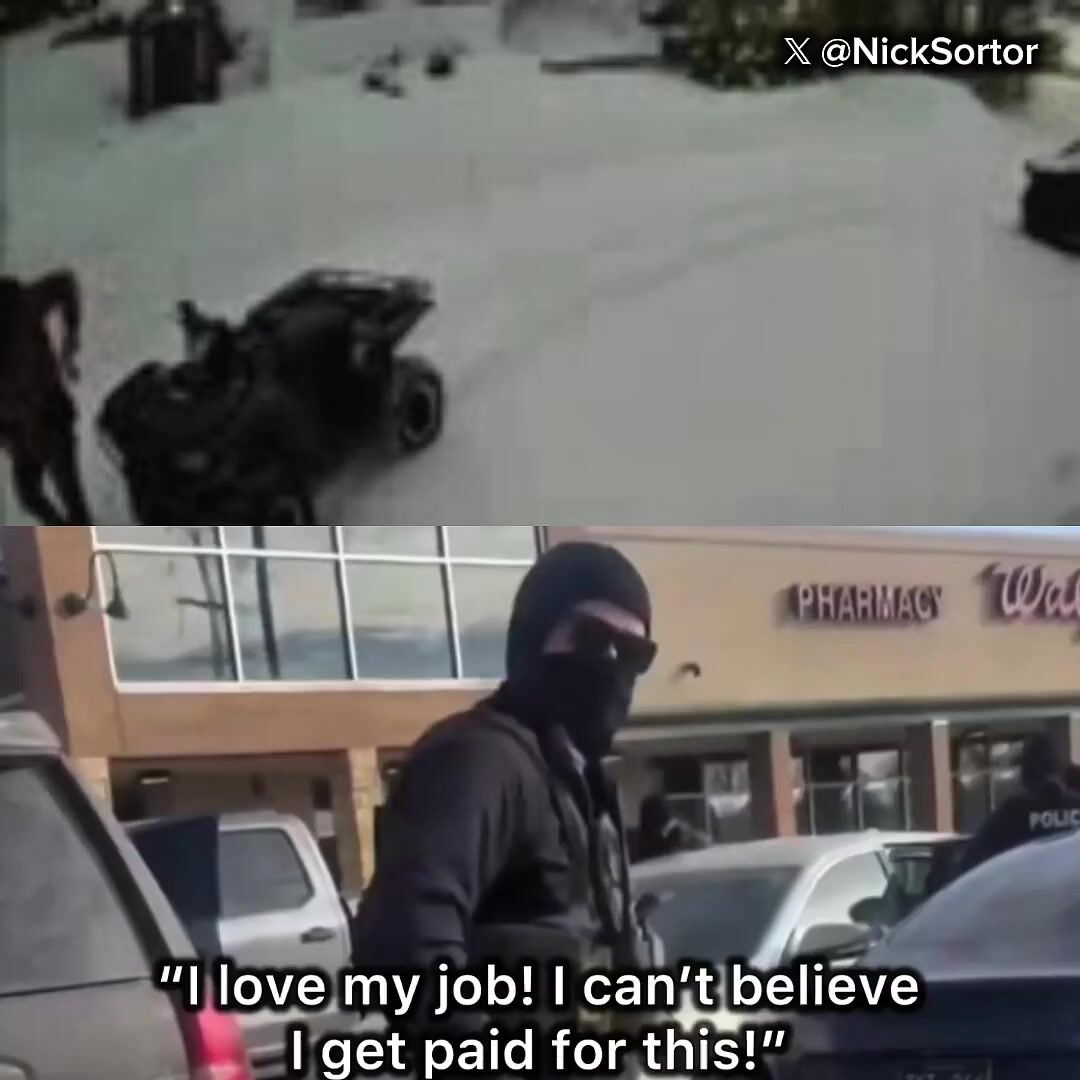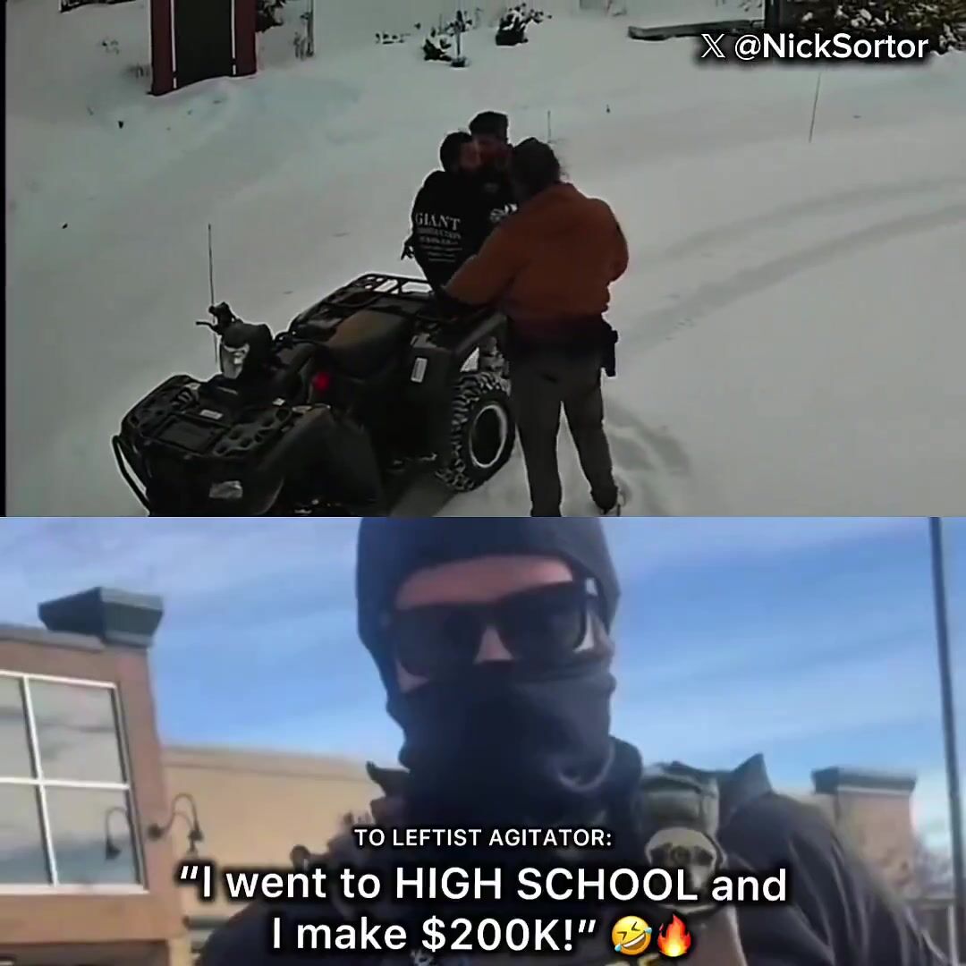 Coolest Job Ever: The ICE agent who went viral for telling a screeching leftist he loves his job and would “do this for FREE” rolled up on a quad like JOHN WICK, staging a takedown of two illegals in the snow
