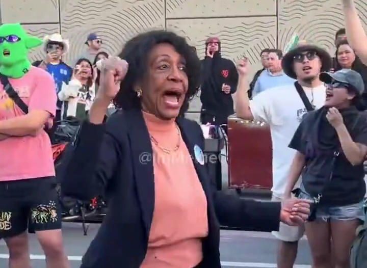 Maxine Waters didn’t like the low energy of the protesters in LA, so she got out of her SUV and led them in chanting, “ICE out of LA.”