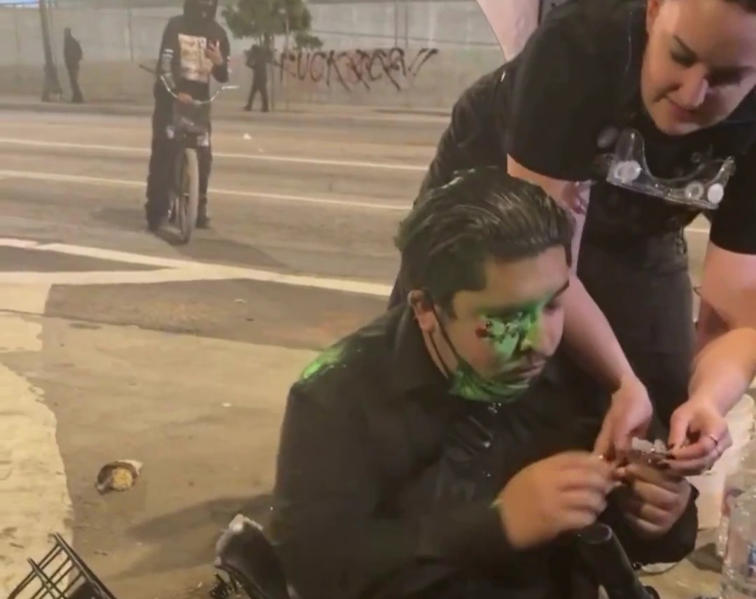 DTLA rioter just learned: FA against federal agents, FO with a pepper ball to the eye. Eye patch era unlocked. That’s gonna leave a permanent mark. At least the face diaper saved his mouth.
