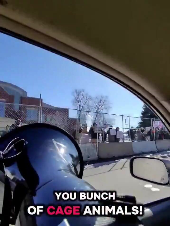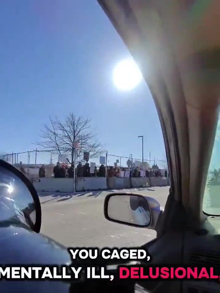 Man with megaphone drives by anti-ICE protesters in troll mode