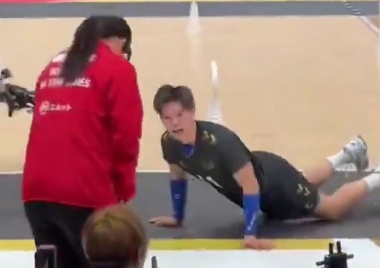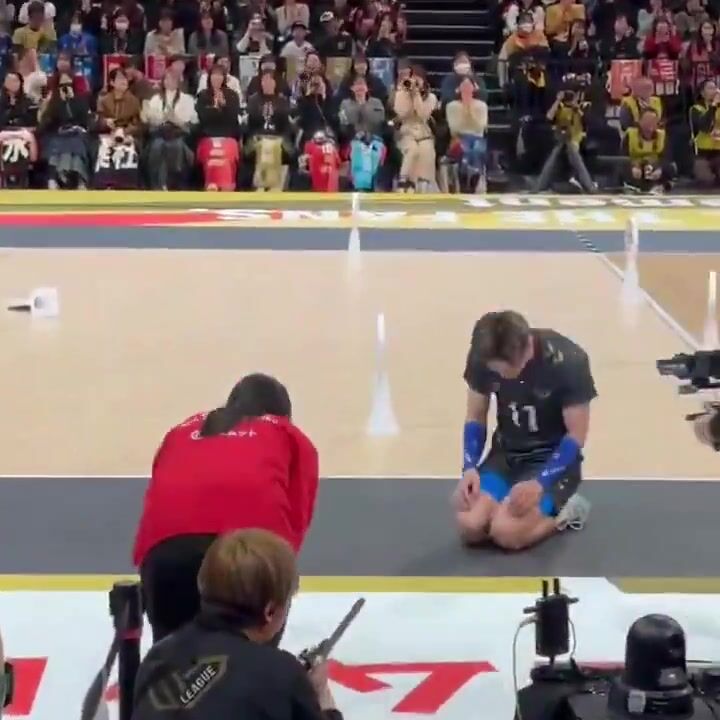 A Japanese volleyball player accidentally hit a girl with the ball and apologized to her in a very impressive way, in the best traditions of Japan.