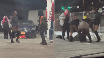 A group of Women defend themselves after a man randomly threw a cone at their car