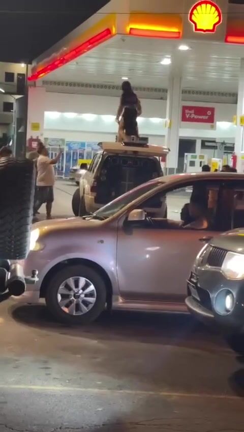 A young woman fell from the roof of a vehicle after a misstep.