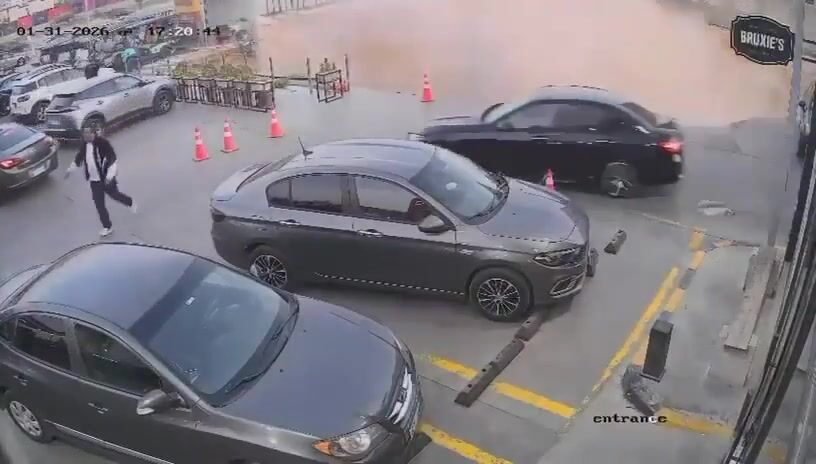 Right at the beginning, the two guys standing over on the left. Look just above the guy on rights head. In the shop window..... is that someone there?