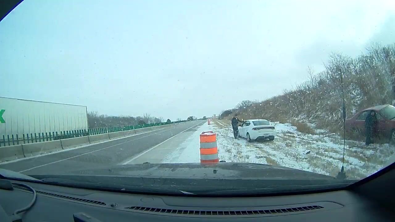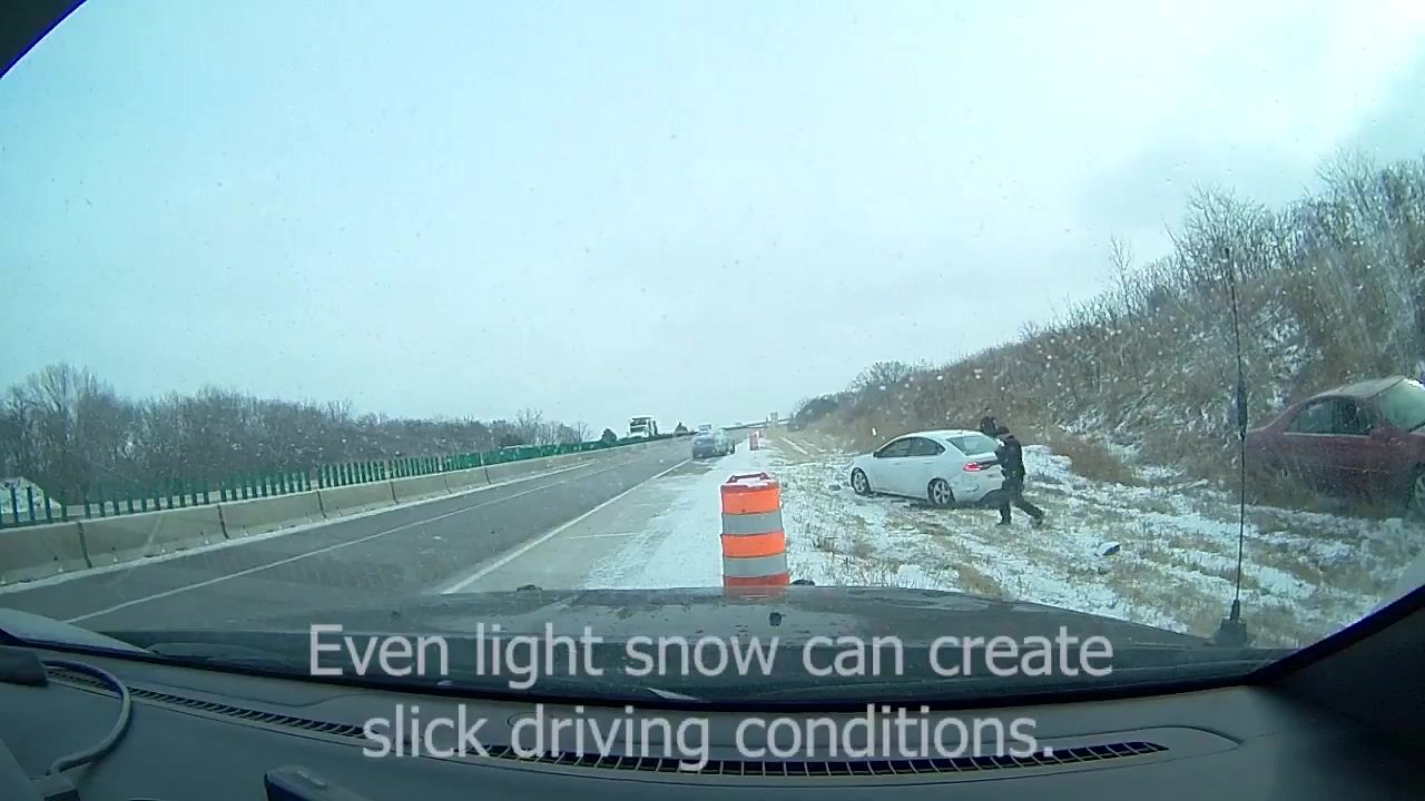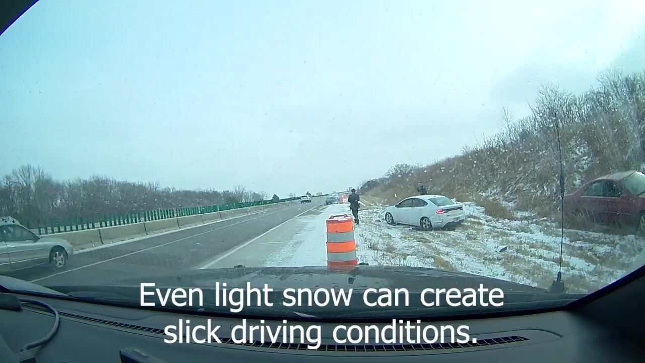 Despite only light snowfall, troopers reported numerous slide-offs in a short span of time. NSP said at least three vehicles lost control within about 15 minutes.