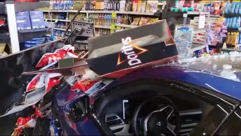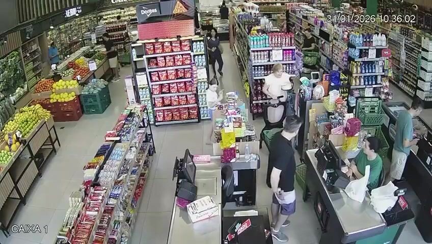After driver confused brake with accelerator, car crashed into market and hit two people in Paraná.