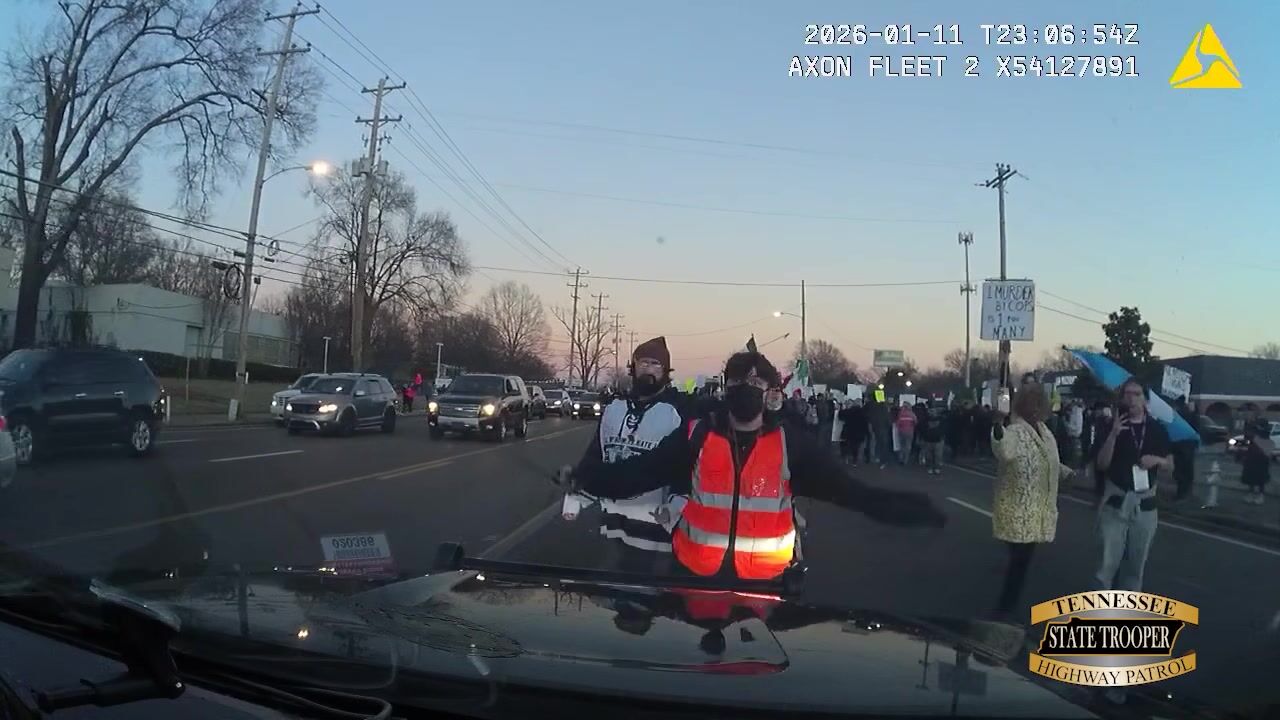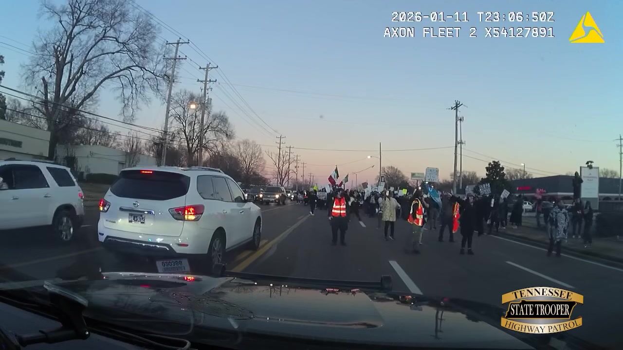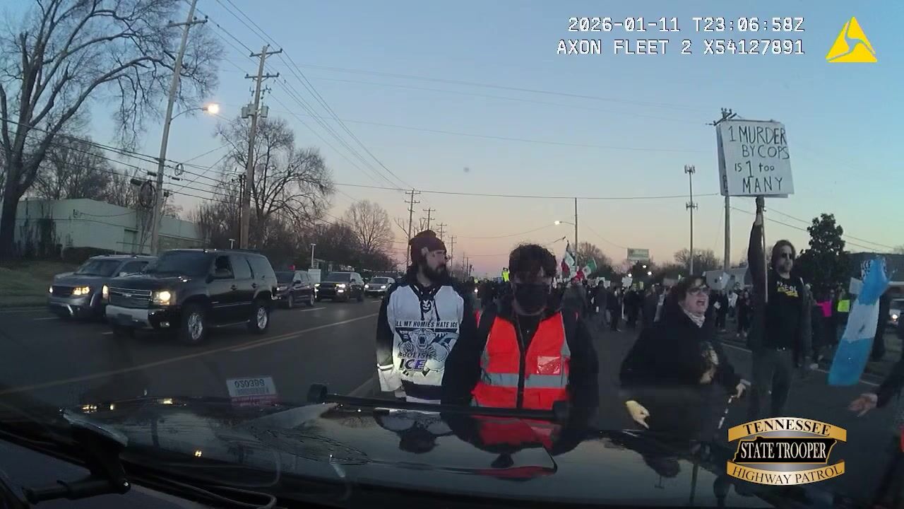 Tennessee Highway Patrol has just released dashcam footage after a TN legislator claimed a person was "run over" by a state trooper during an anti-ICE protest.
