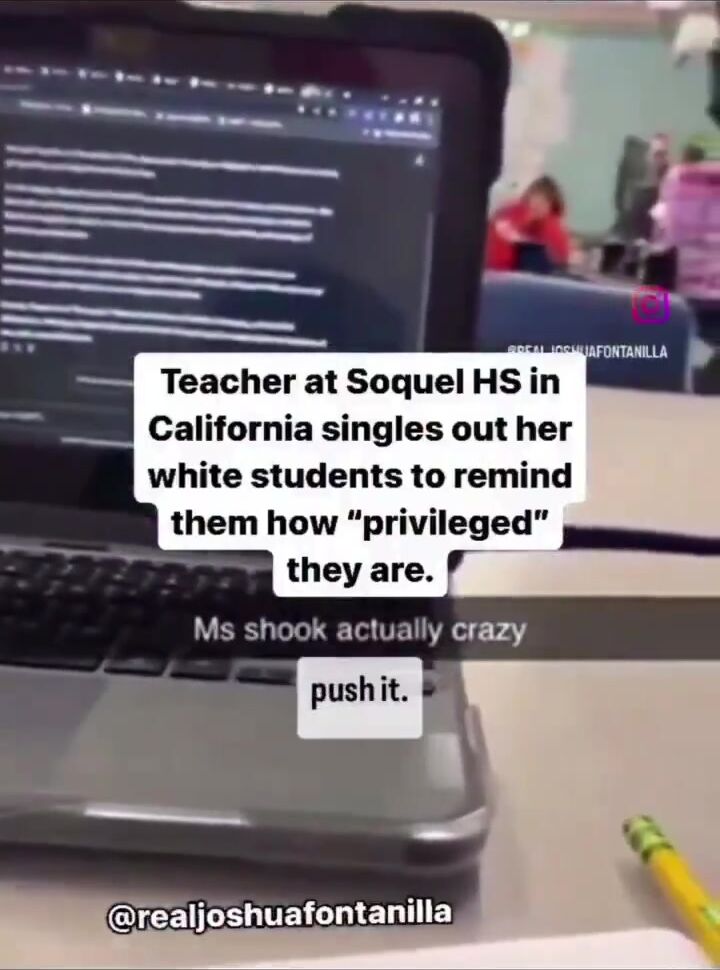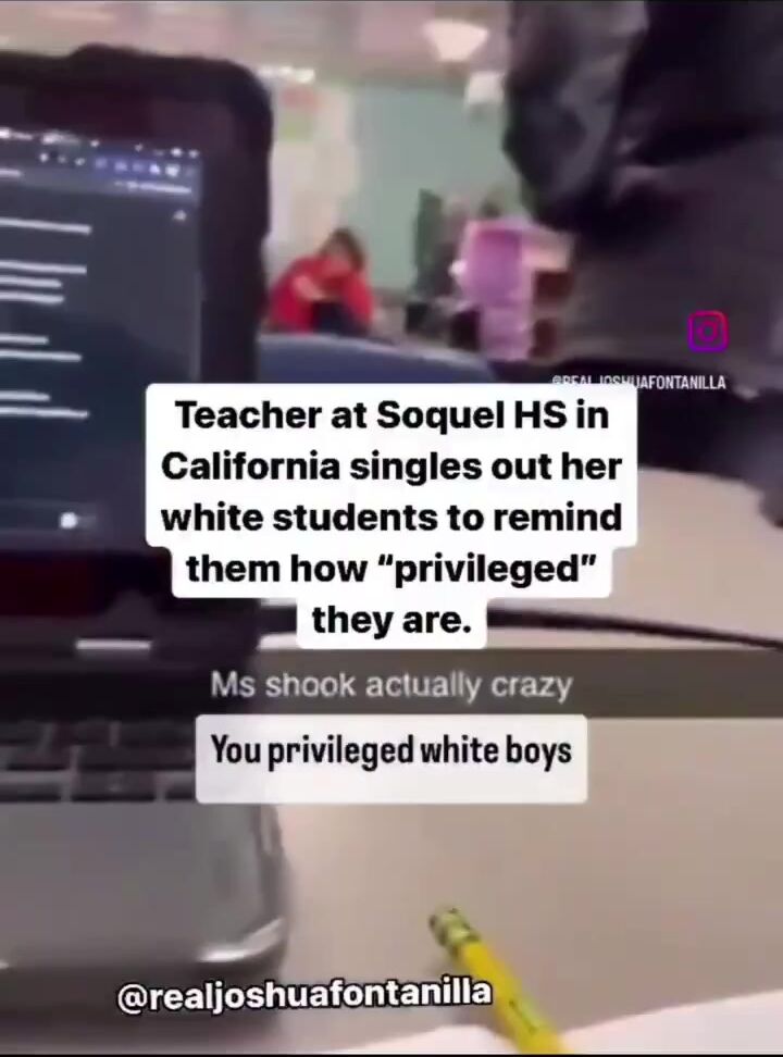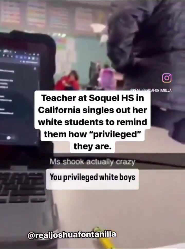 California teacher is openly racist towards White students She yells at them “"You privileged White boys” Homeschool your kids