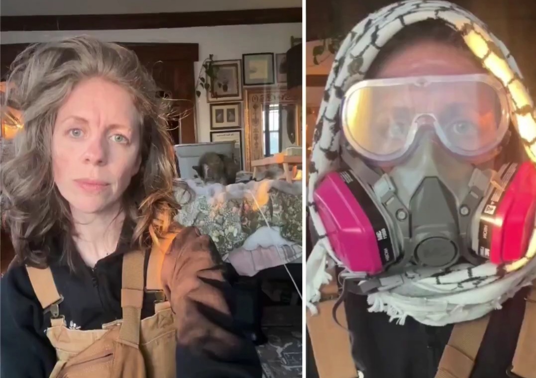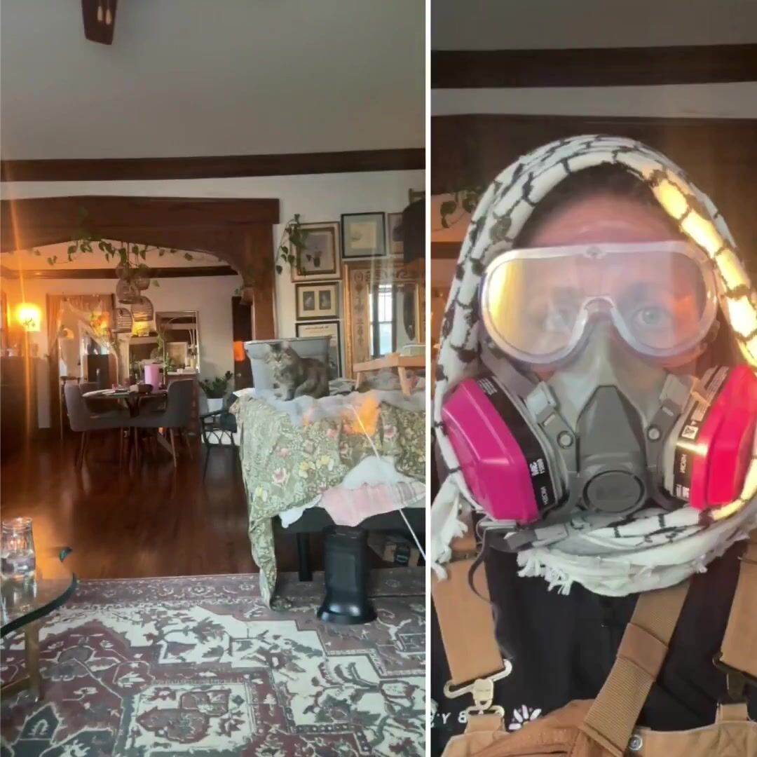 Rose previously went viral for showing off her protesting outfit while her cat watched in the background.