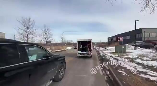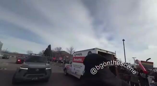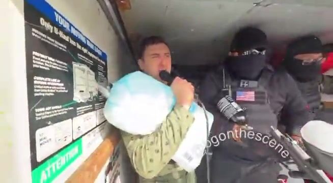 Jake Lang rides in a U-Haul outside the Bishop Henry Whipple Federal Building in MN