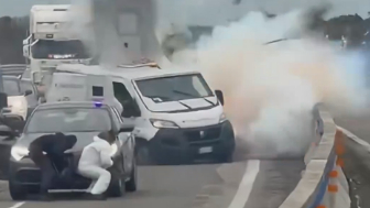 The attackers parked a van across the road and set it on fire in an attempt to force the armored vehicle to stop.
