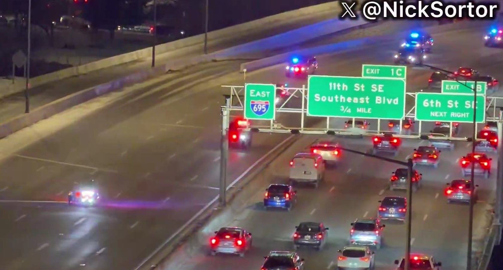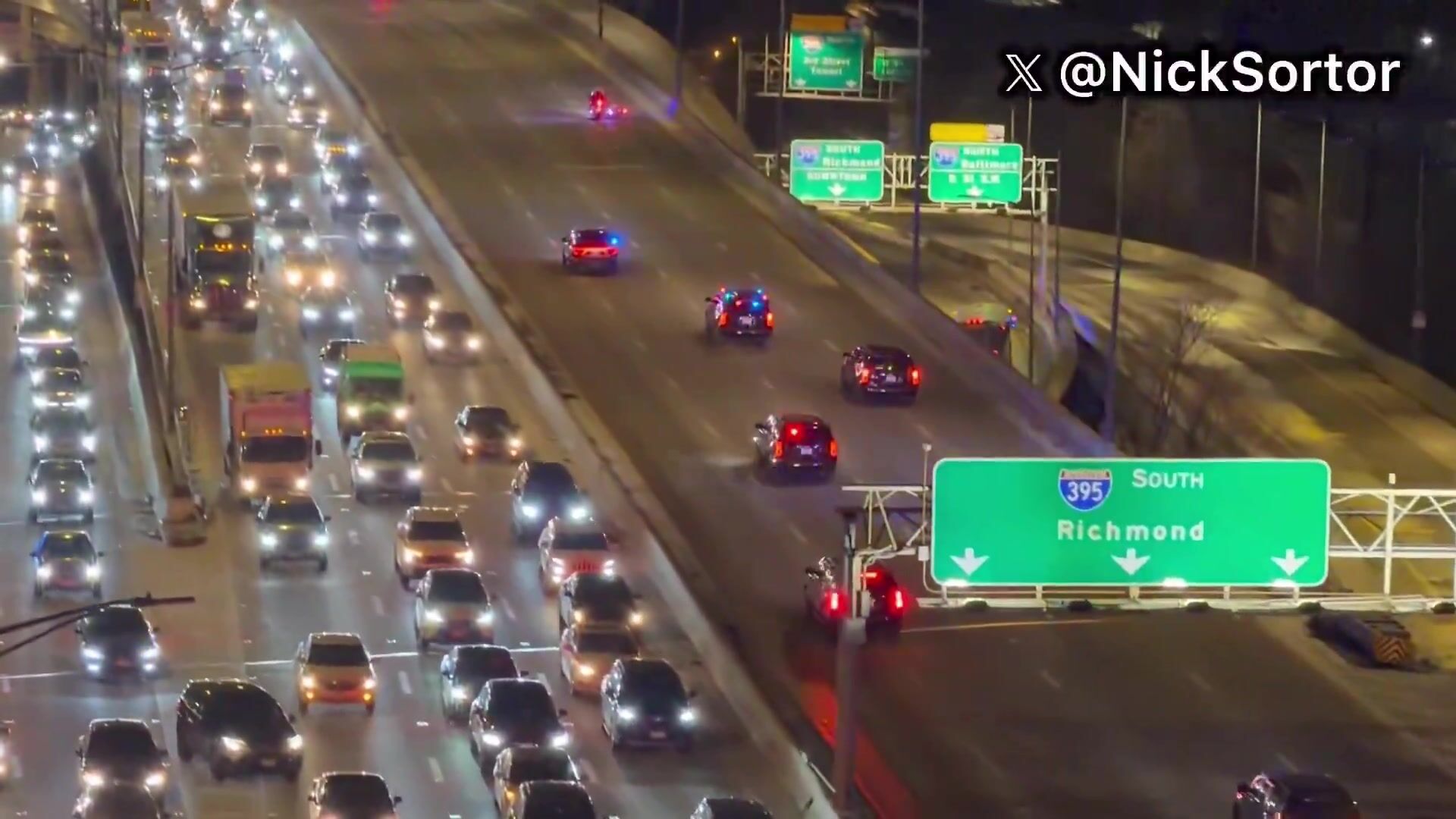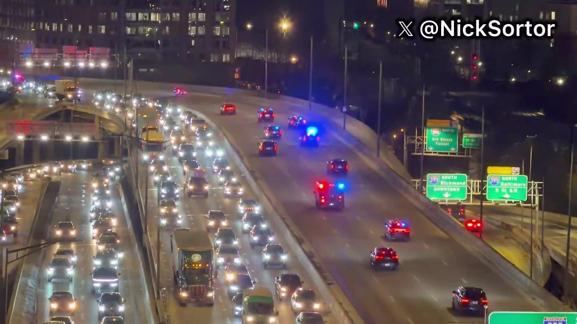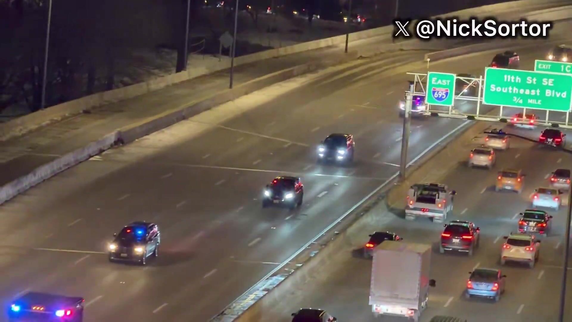 Netanyahu is in a large Secret Service motorcade, and security is INCREDIBLY tight, with I-695W being totally shut down, and two helicopters overhead.