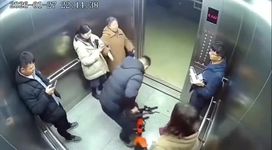 Never step into an elevator with an electric scooter inside