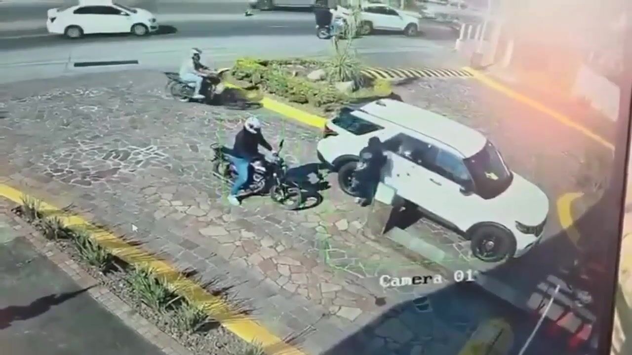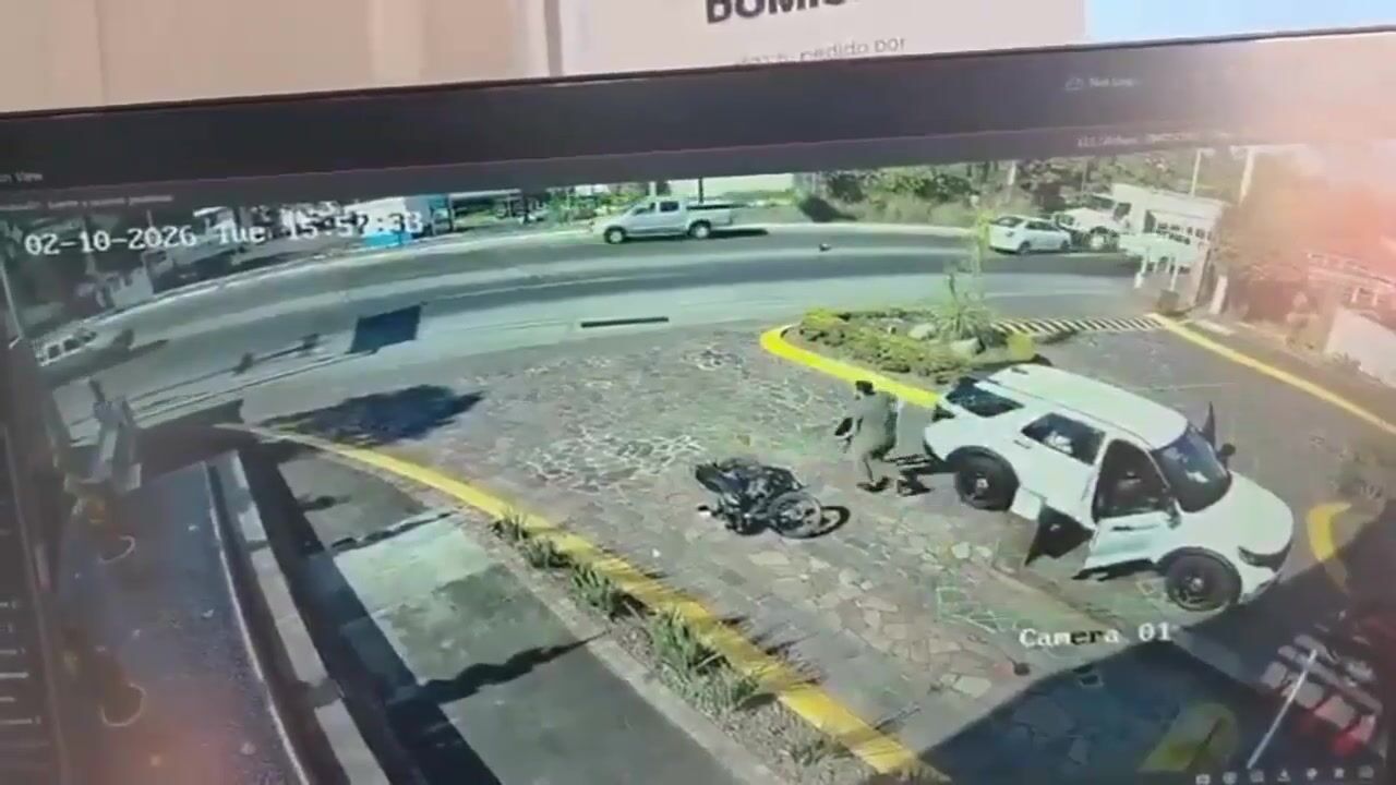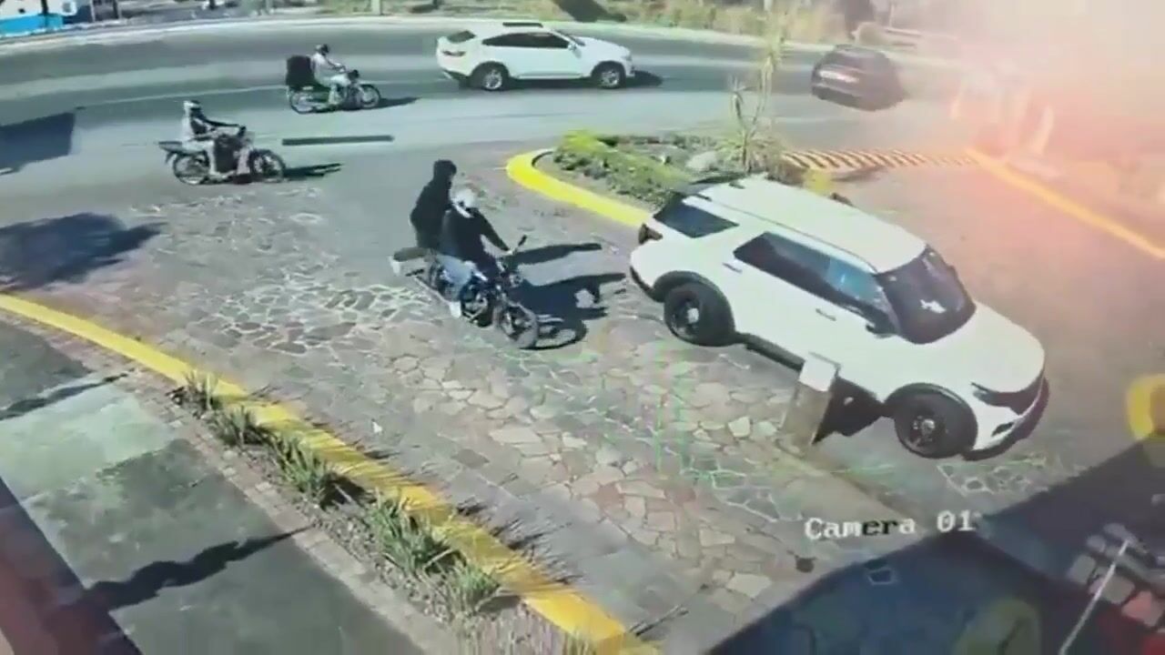 On Tuesday afternoon, two armed men attempted to rob an avocado farmer in Uruapan. To the gunmen's surprise, the white pickup truck their target was traveling in had armed escorts , and the attempted robbery ended with one assailant shot and his accomplice on the run. The incident occurred on the Viaducto a Jicalán, near the Mediterránea condominiums. Security cameras captured the moment two men on a motorcycle approached a white pickup truck with the intention of stealing the vehicle from its occupants. One of the assailants got off the motorcycle and approached the rear passenger door. At that moment, a bodyguard riding in the back of the vehicle responded with a burst of gunfire . The assailant tried to flee on foot, while his accomplice, attempting to escape, lost his balance and also fled down the avenue. One of the alleged assailants, a 29-year-old man, collapsed a few meters away next to a brick wall. On the ground and still injured, he was subdued by one of the bodyguards. Witnesses called emergency services. Civil Protection paramedics arrived at the scene and treated at least seven gunshot wounds to the assailant's chest and lower extremities. He was taken to a regional hospital under police custody. His accomplice remains at large. Local authorities deployed an operation in the area after the shooting and have already begun the corresponding investigations to find the whereabouts of the second person involved.