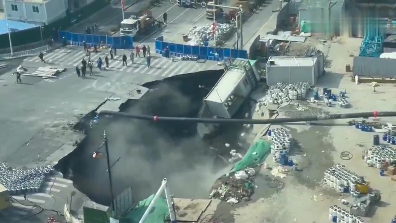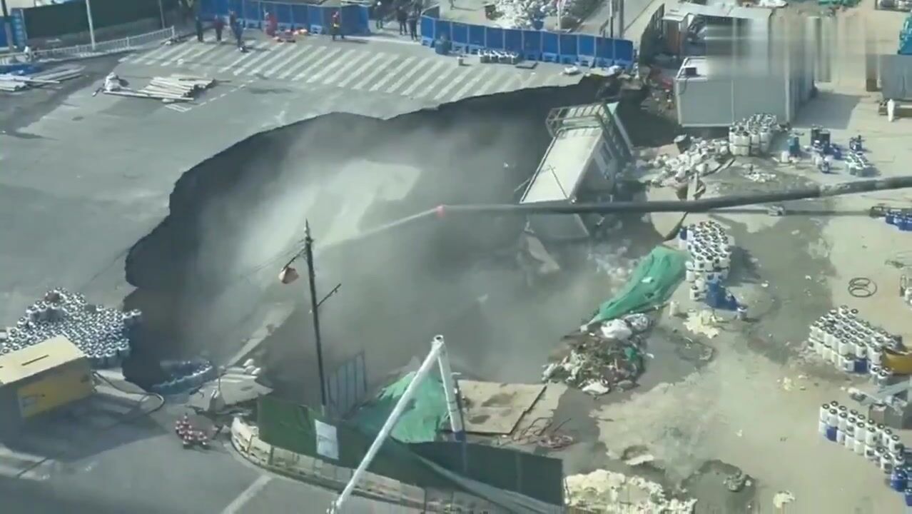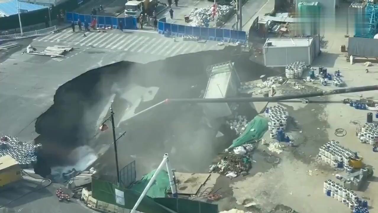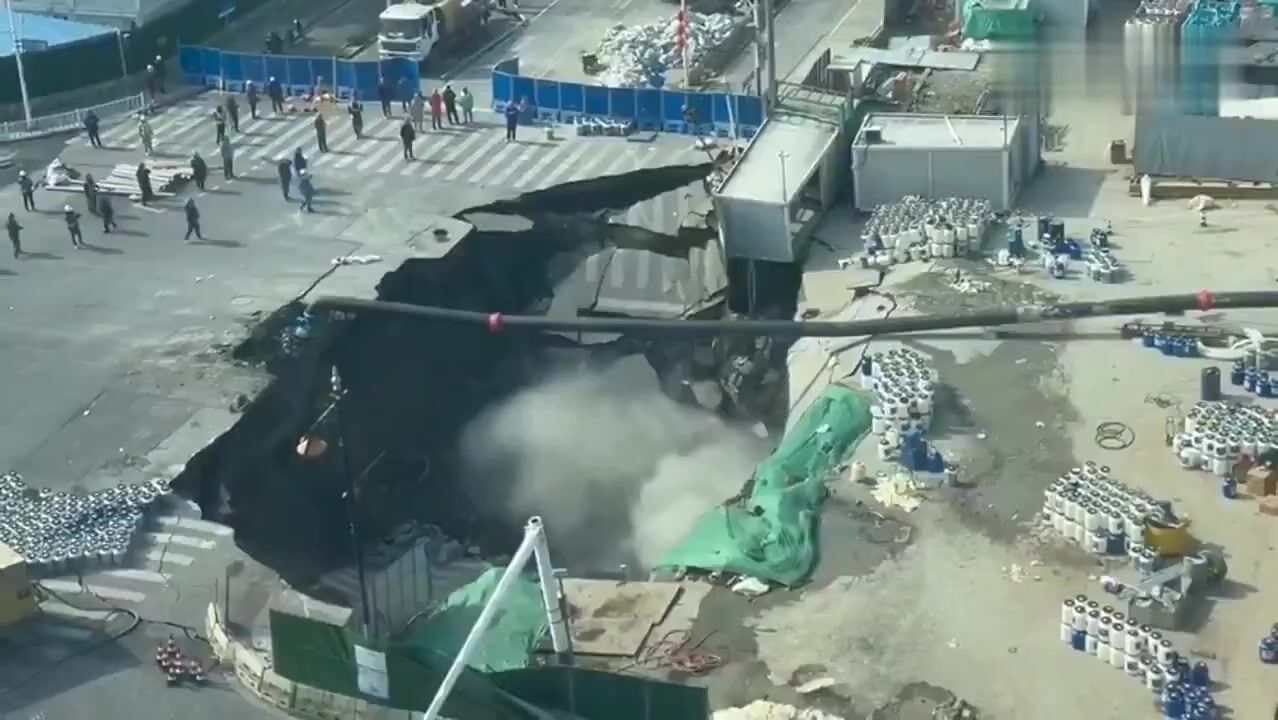 massive sinkhole suddenly opened in Shanghai swallowing a large section of roadway