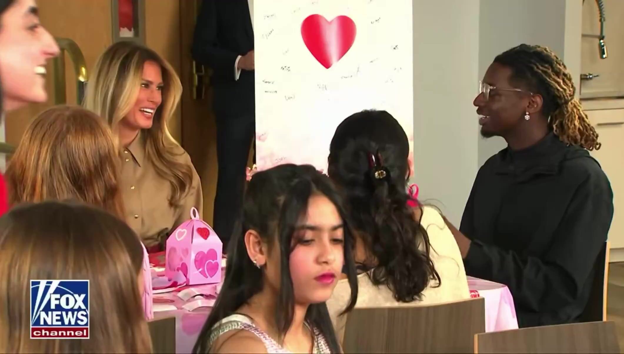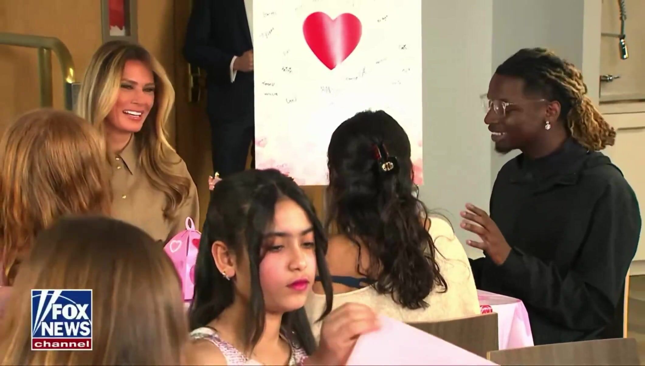 During an early Valentine's Day event at The Children’s Inn at NIH, First Lady Melania Trump joined children and young adults in clinical trials for arts and crafts, signed a large card, and encouraged shy kids with a playful nudge. A young man named Marlon charmed her by calling her a queen, prompting her warm reply, "He’s a charmer!" This marked her fourth visit to the inn, a nonprofit providing free housing to ease families' burdens during long treatments, where she praised the children's resilience and shared her love for Michael Jackson's "Billie Jean." Inn CEO Jennie Lucca noted the visit brought joy and hope to families.