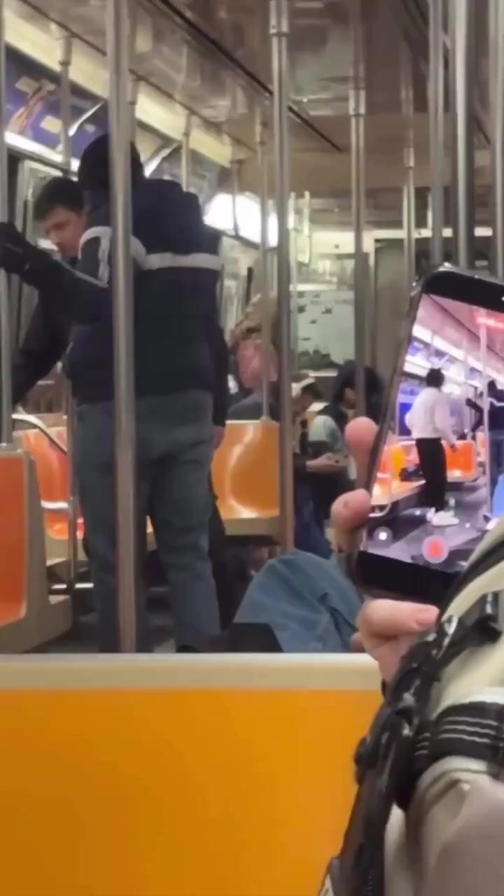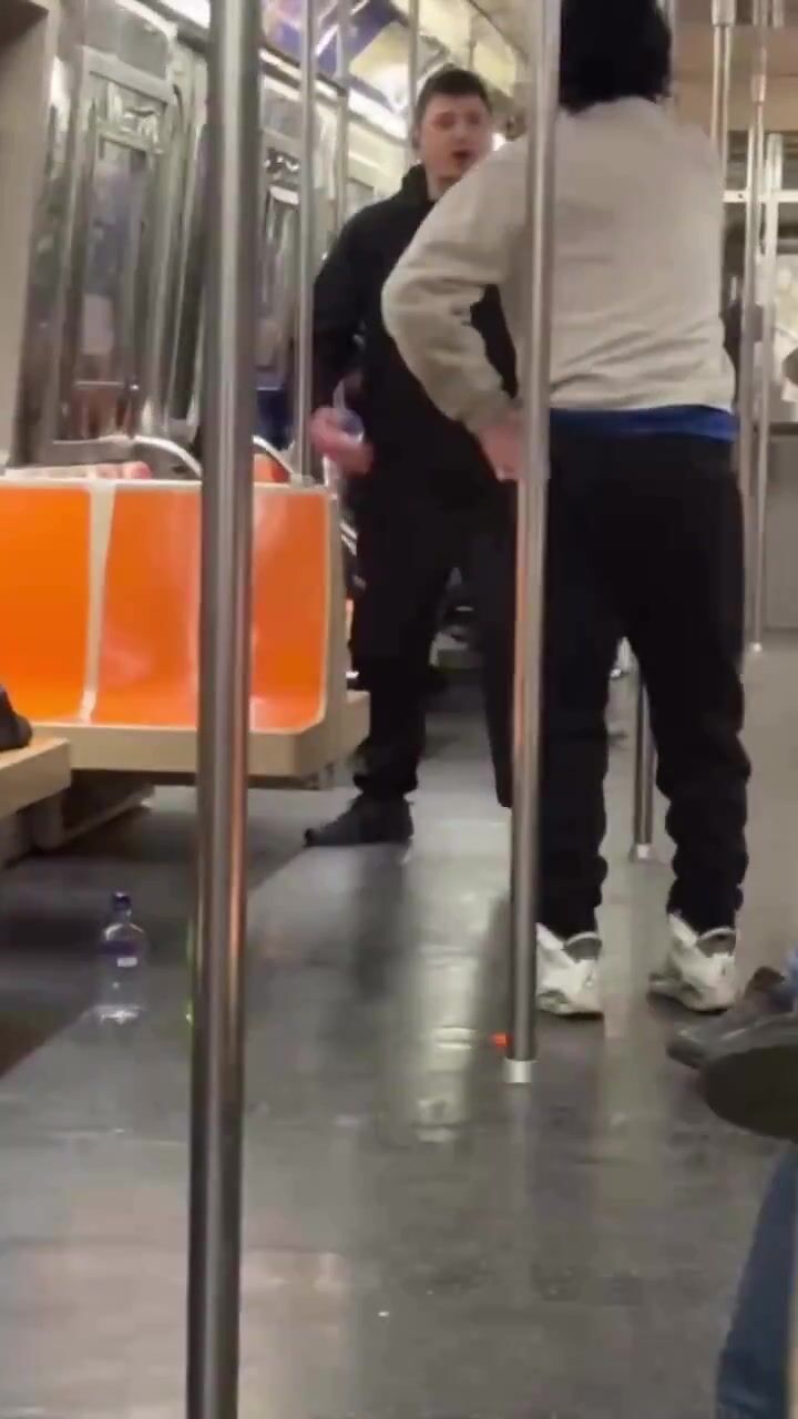 The witness who recorded stated: Around 3:30pm on the B train towards Manhattan A crackhead wearing the Steelers sweater was bothering subway passengers and the whiteboy stood up and wanted to fight him.