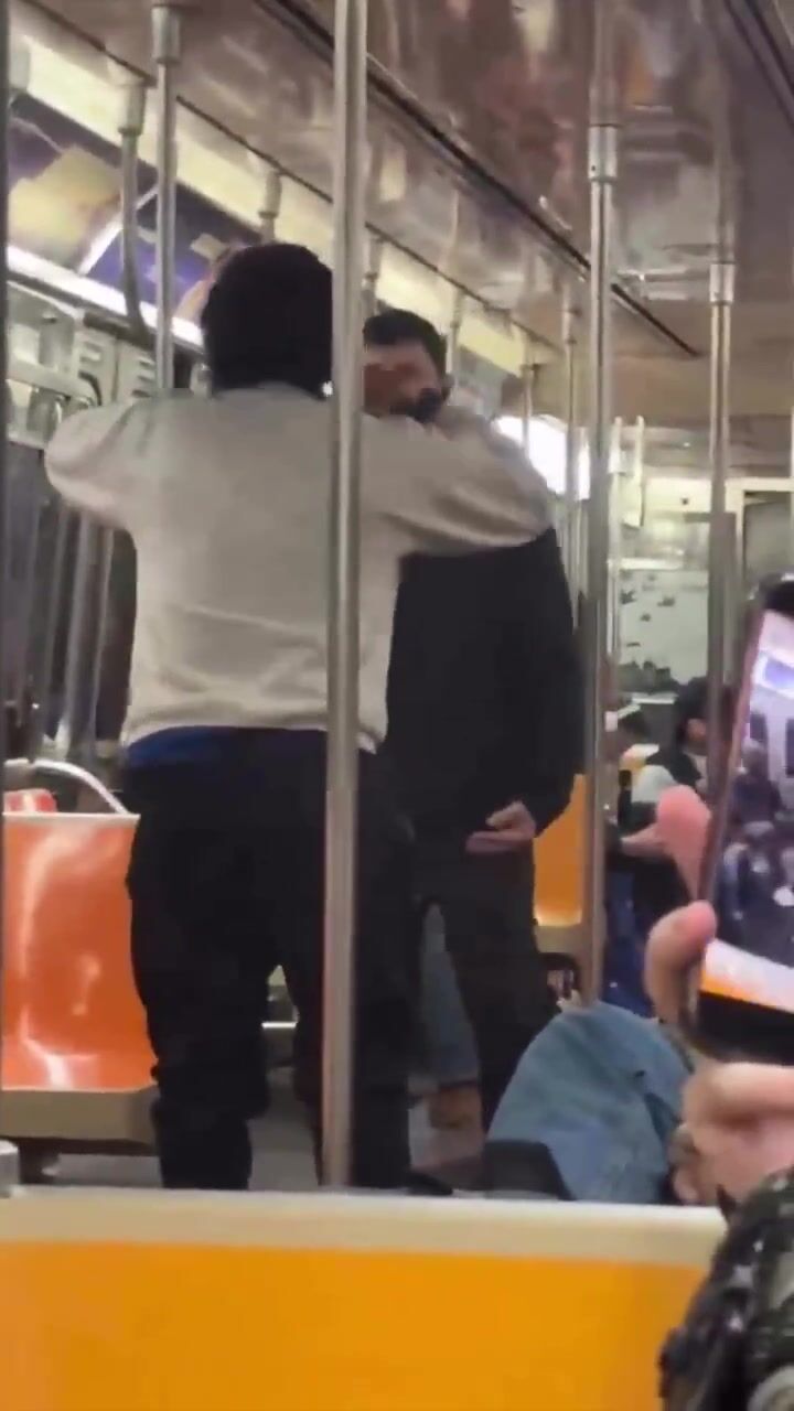 subway rider stood up to the man wearing a gray Steelers sweater because he was bothering passengers in the train yesterday Tuesday January 13