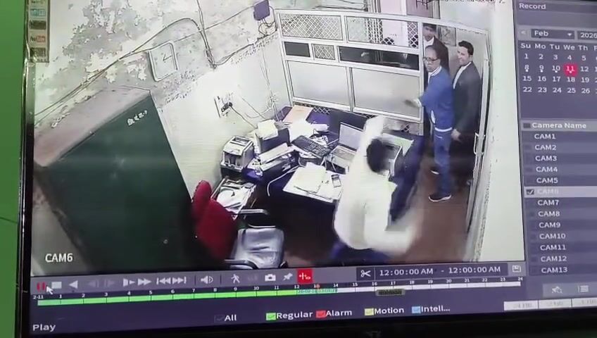 In the video, lawyer Farooq first slaps clerk Asgar Ali three times. The two then argue for about five minutes. Farooq then starts to leave and says something to the clerk. Enraged, Babu Asgar Ali pulls out his licensed revolver from his waistband and challenges Farooq.