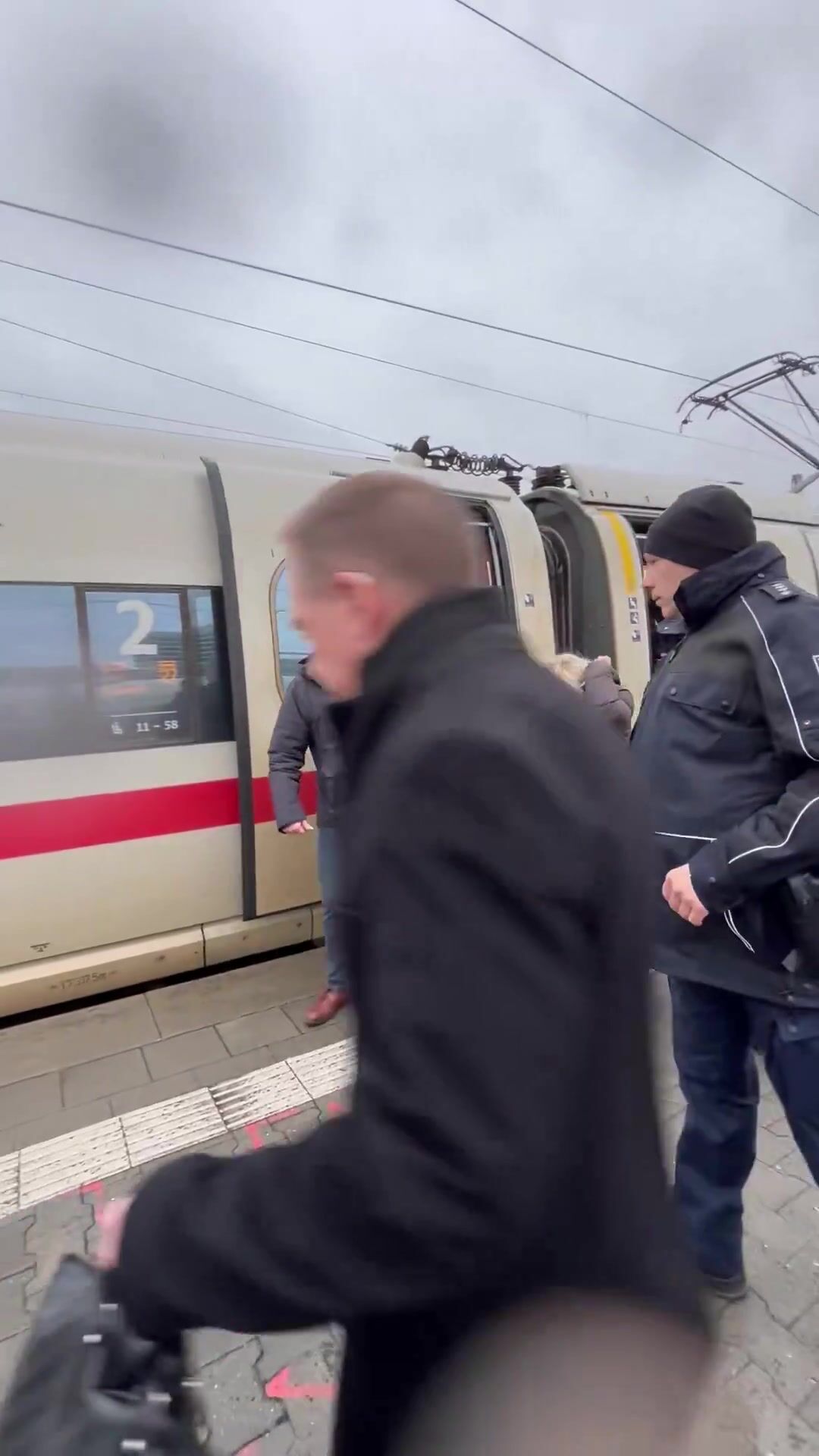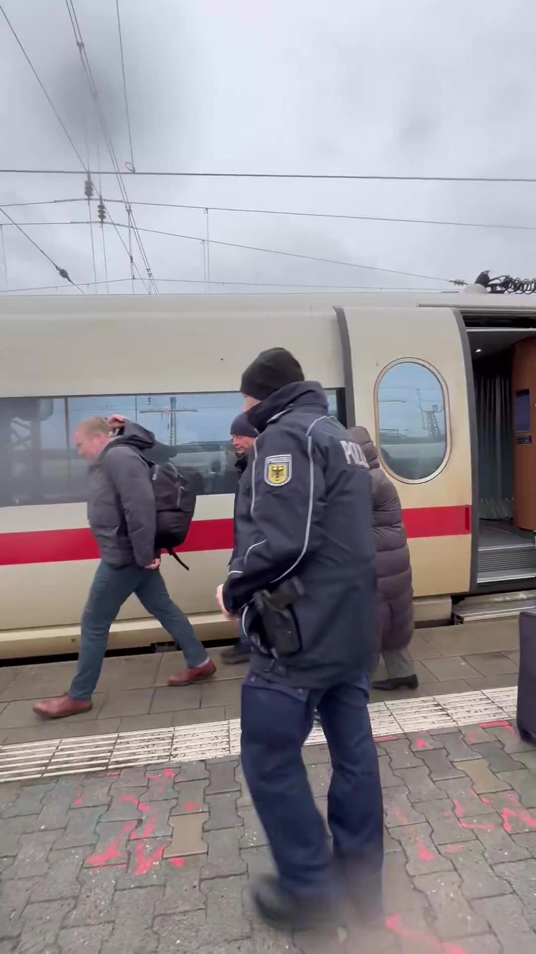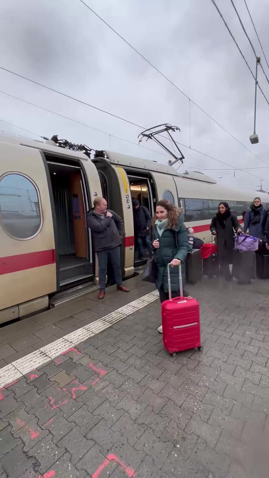 Hillary looking like a Gnome gets off Train in Munich