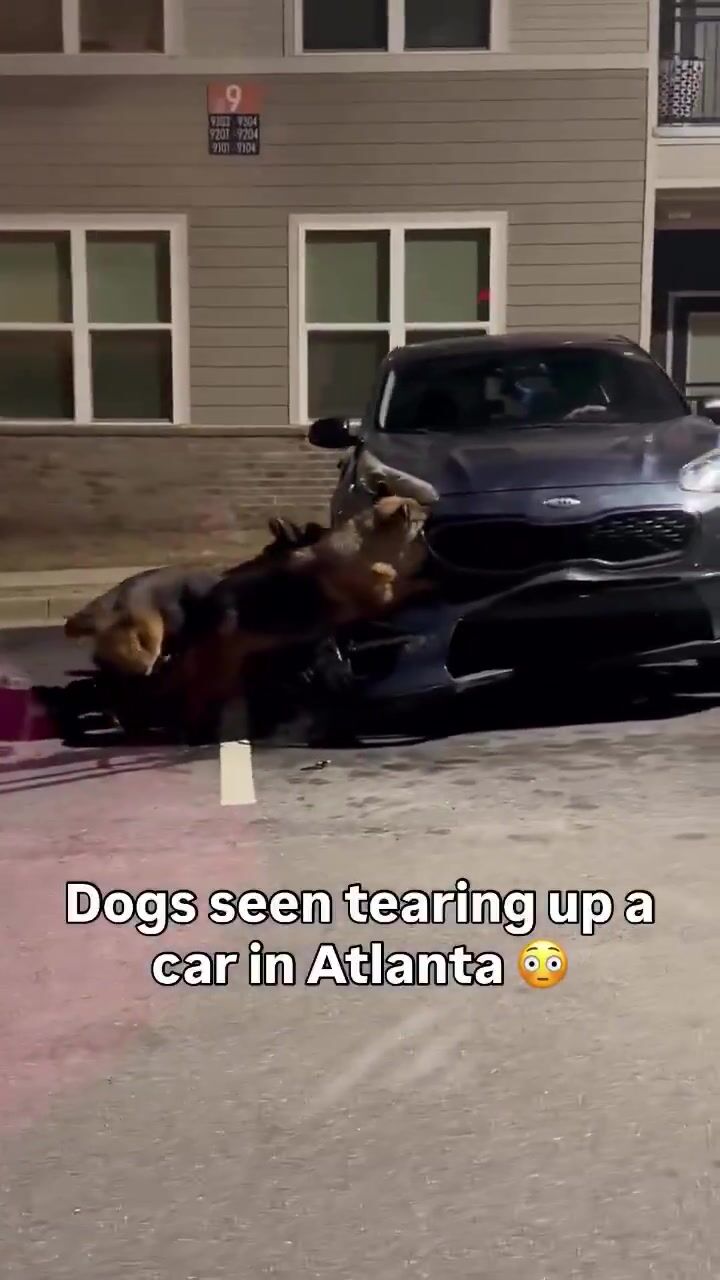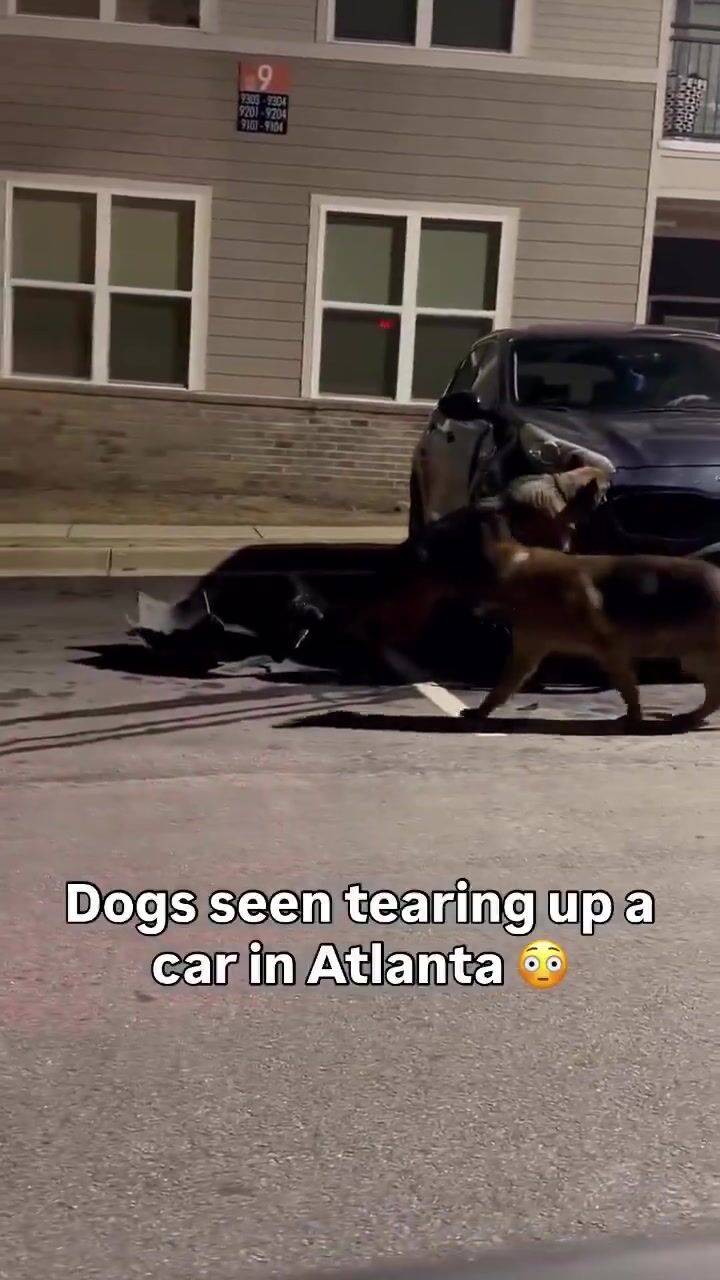 Dogs seen tearing apart a car in Atlanta; people suggest another animal may have been involved