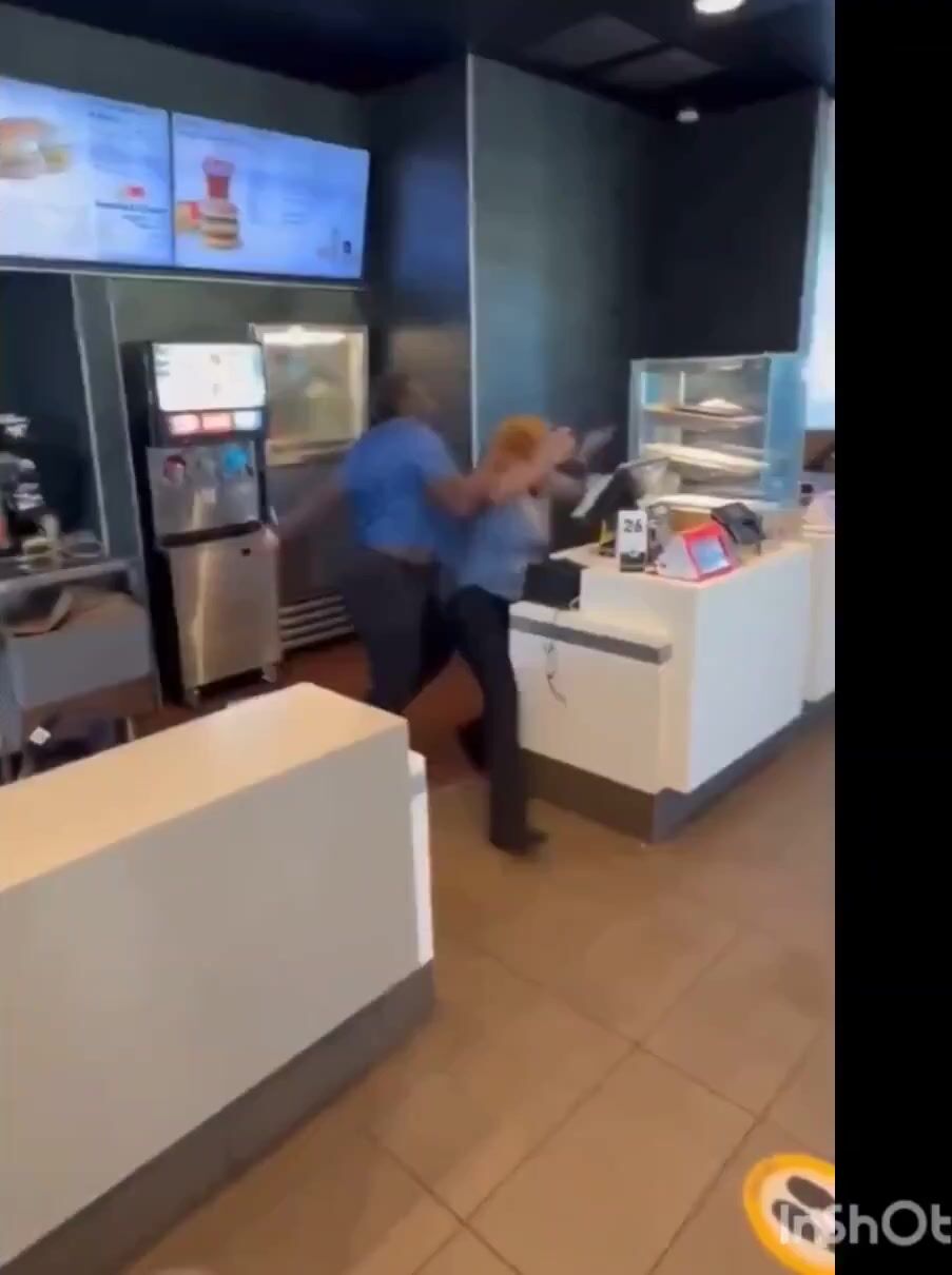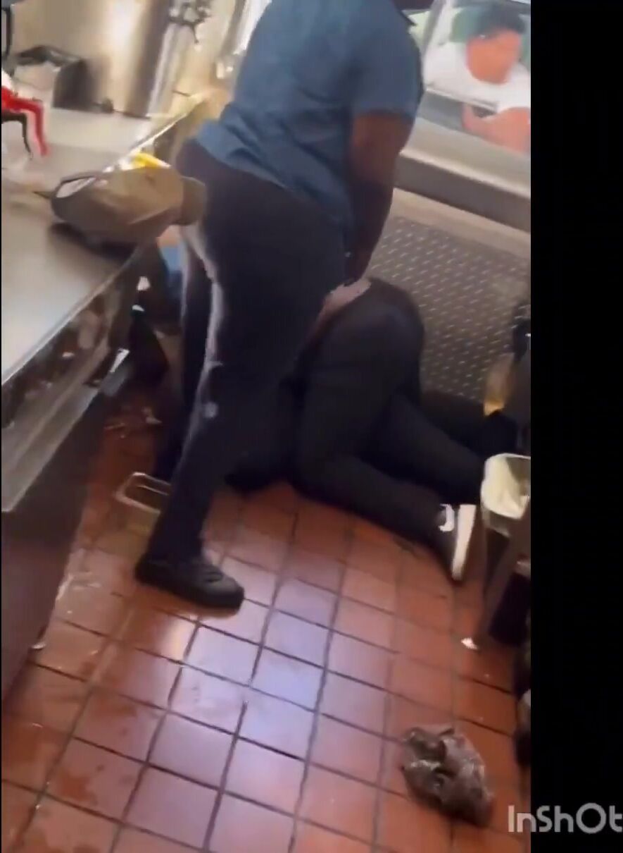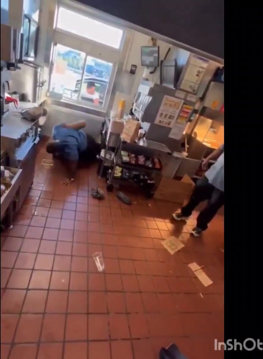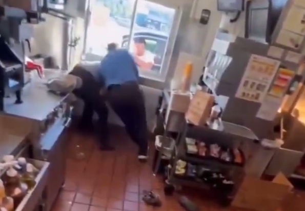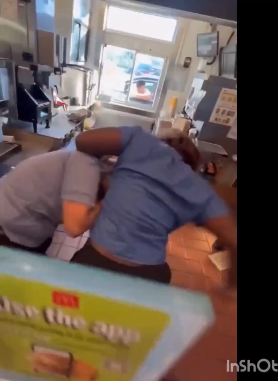 McDonalds Kitchen Brawl hile Man waits at the Drive-Thru Window