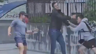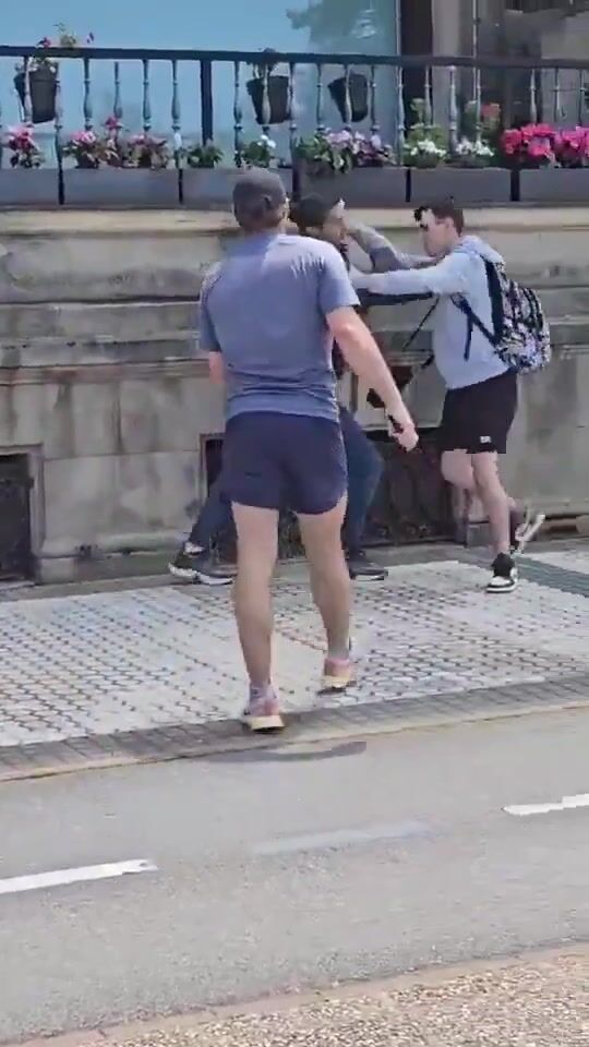 That last guy to come up who was a head taller, and 60 lbs hevier than anyone there should have taken over and taken the thief down instead of just talking on his phone.