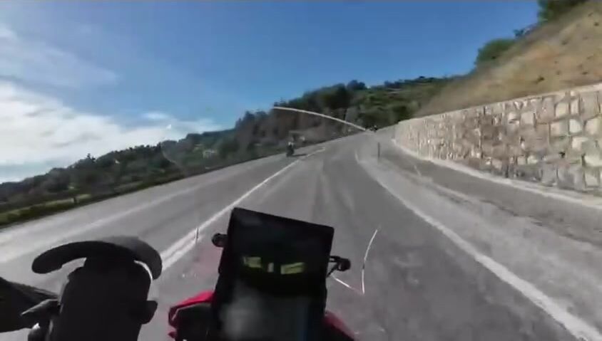bro casually getting off his bike not warning oncoming traffic..... who cares