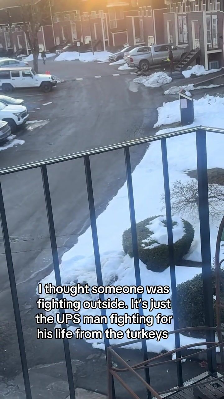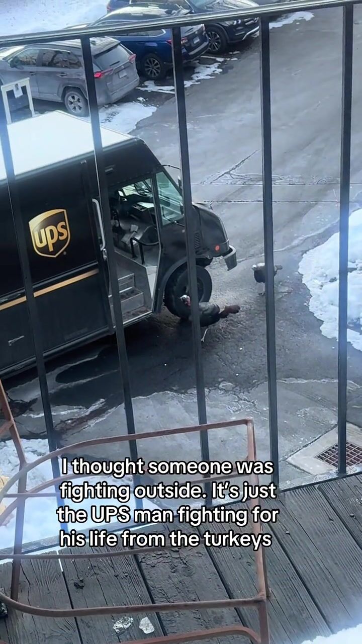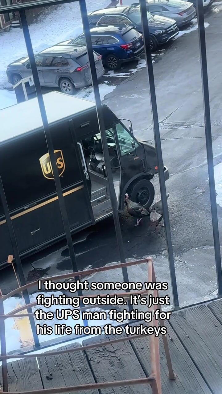 Wild turkeys were caught on camera hilariously terrorizing a UPS driver trying to make deliveries in Connecticut. The driver was seen running from door to door to dodge the birds and forming plans to avoid them while in his truck. “Ya’ll better back up,” he yells at them while taking cover in his UPS truck at one point in the video. “Jesus Christ. I’m 40-years-old, I can’t deal with this,” he says, before making another run for it. “I thought I heard the neighbors fighting so I went to look out the window and realized it was the delivery driver fighting with the turkeys,” said Hindy Jaffee, a Branford resident who filmed the video.