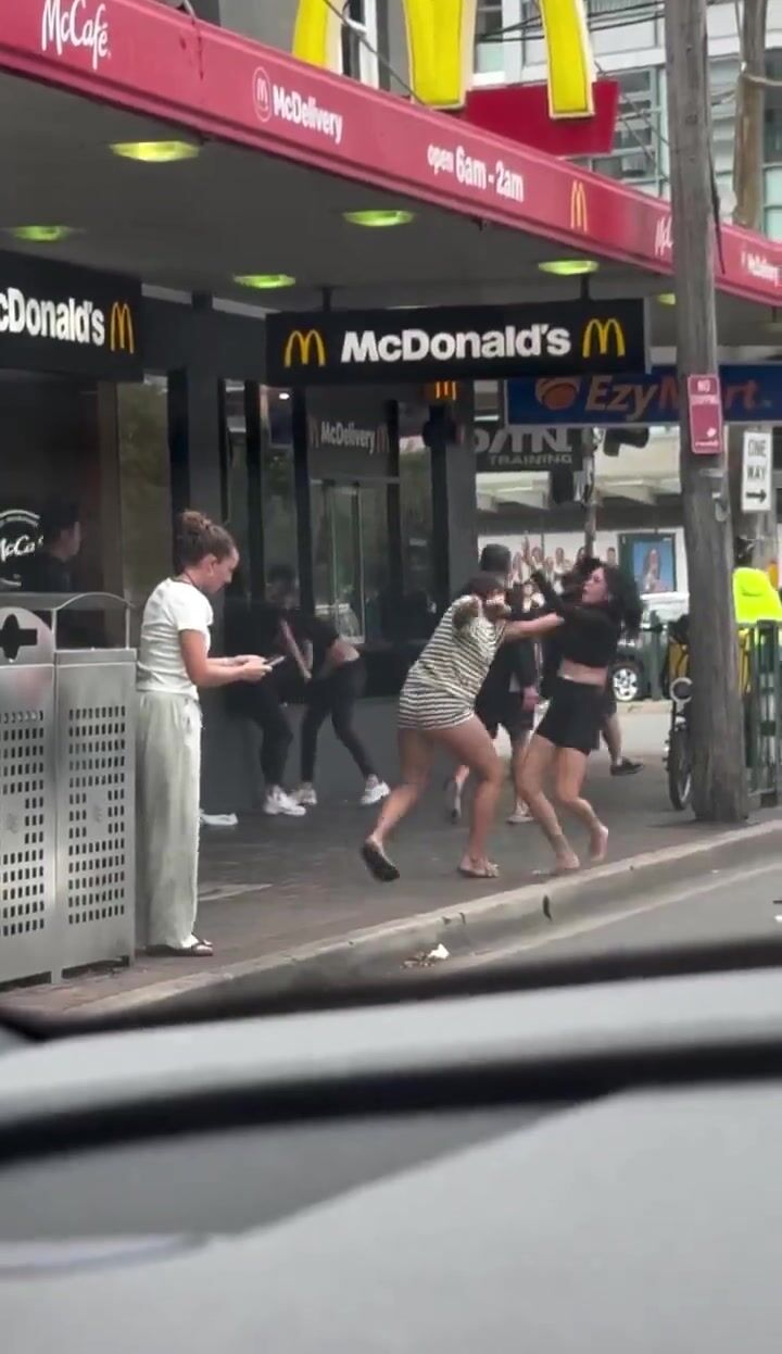Shocking moment brawl erupts outside a McDonald's after two girls gang up on victim - as 'girl gangs' terrorise Maroubra