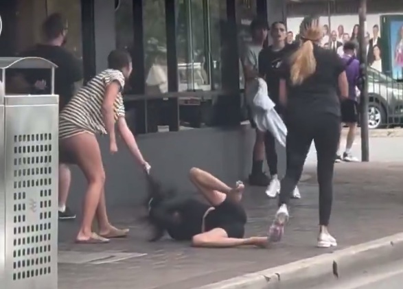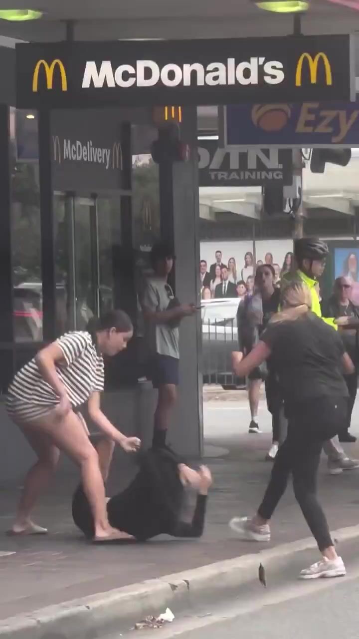 Shocking moment brawl erupts outside a McDonald's after two girls gang up on victim - as 'girl gangs' terrorize Maroubra