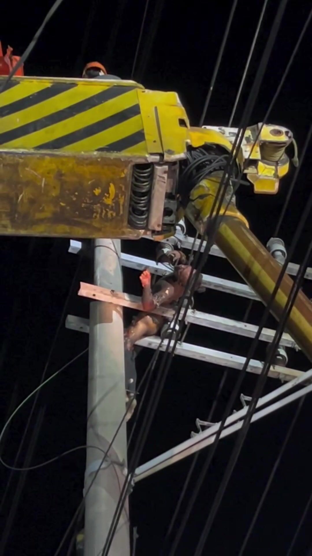 Personnel from the Manila Electric Company (Meralco) later retrieved the body from the post.