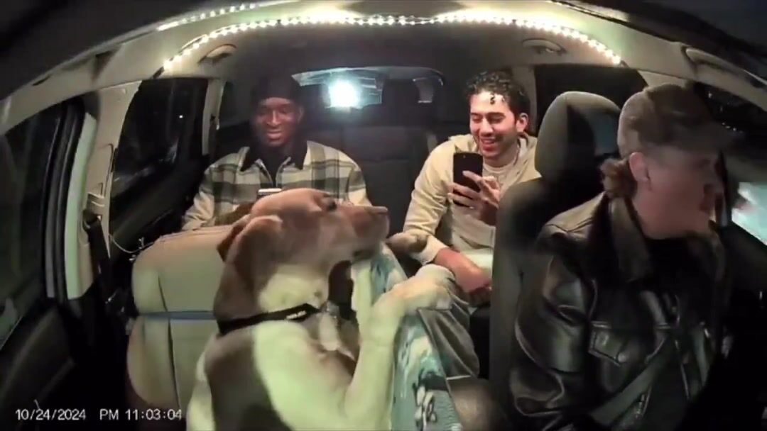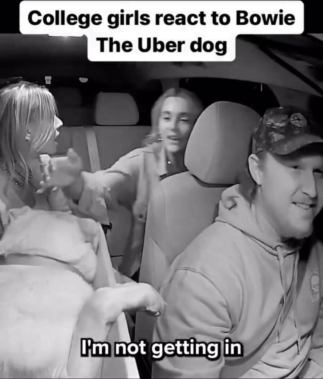 Girls react to Bowie the Uber dog
