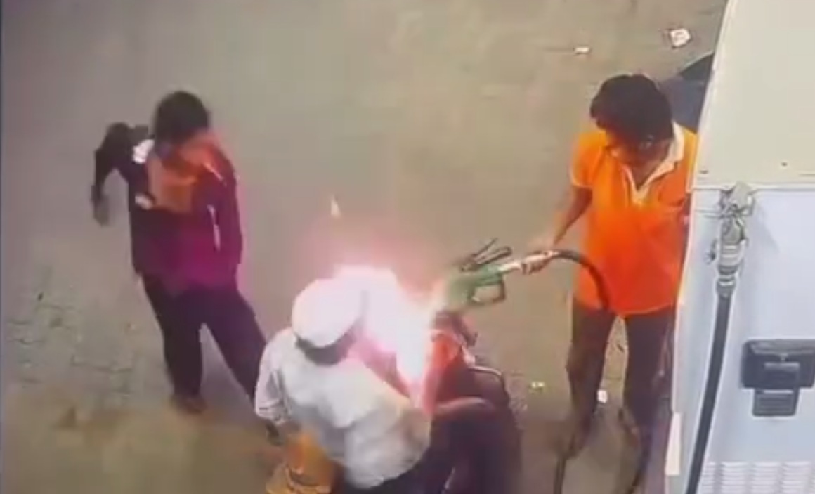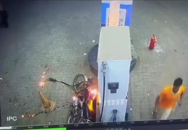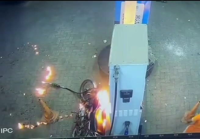 When stopped from lighting a cigarette, a crazy young man set fire to the petrol pump nozzle; CCTV footage will make your soul tremble.