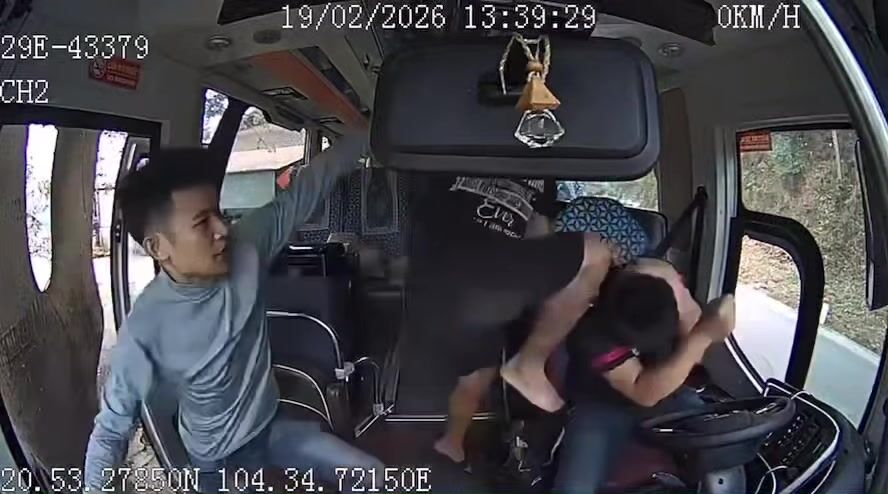 The incident occurred on the afternoon of February 19th, the third day of the Lunar New Year (Year of the Horse), in Moc Chau, Son La province. According to reports, after an argument, a tattooed man violently punched a passenger in the driver's seat of a Khanh Linh Transport company bus.