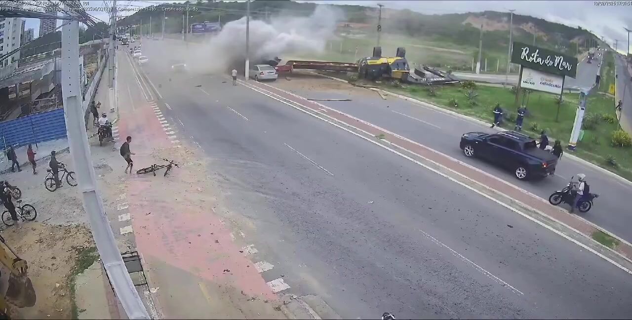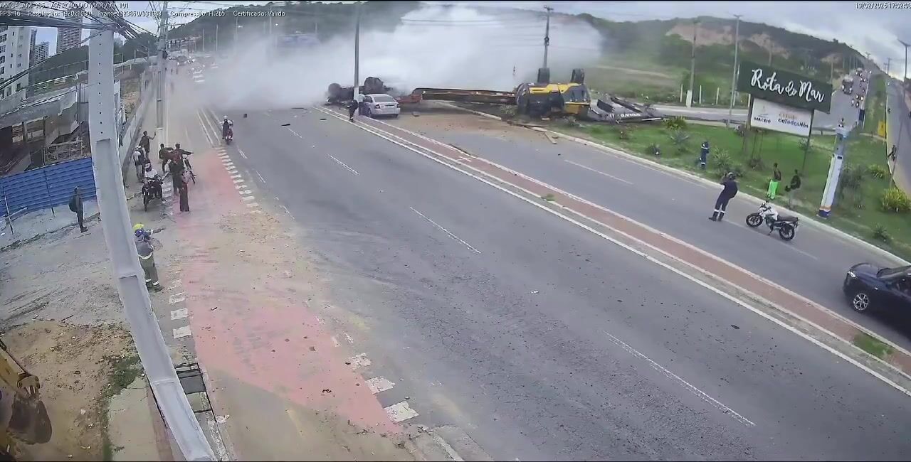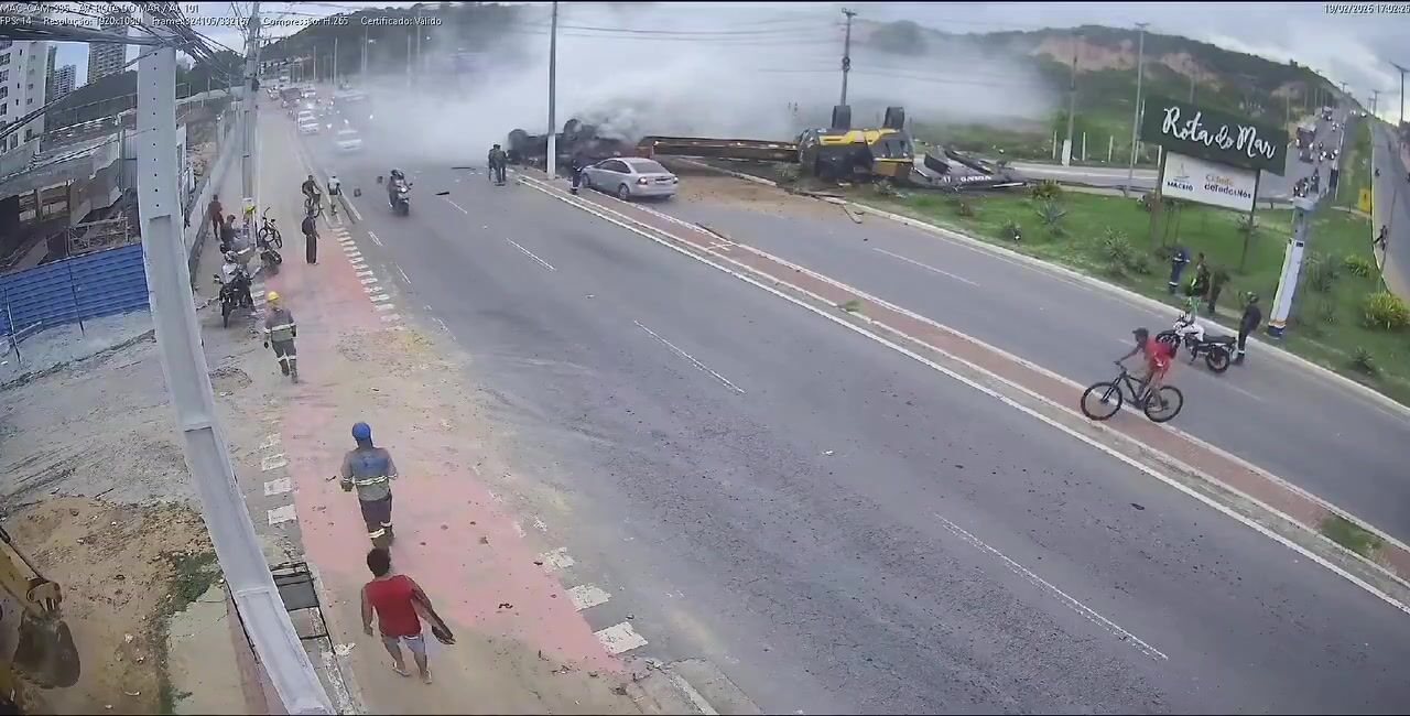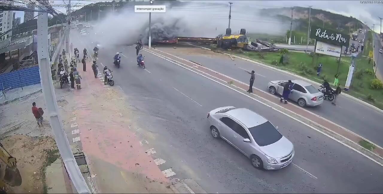Truck overturns, catches fire, and leaves two dead on the Rota do Mar highway in Maceió; VIDEO