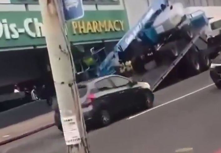 It seems that the man, said to be in his 30s, had pulled up outside the front of the mall and was in the process of driving the lift off of a tilt-back truck bed, using the winch, when one of the boom lift’s wheels slipped over the edge of the bed, causing it to overturn. The fall threw the man from the platform, where he sustained serious injuries that proved fatal. We understand that he was declared dead at the scene.