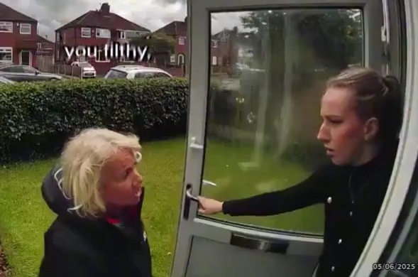 She later confronted her daughter-in-law at the front door, and the heated exchange was all captured by the home's Ring doorbell camera.