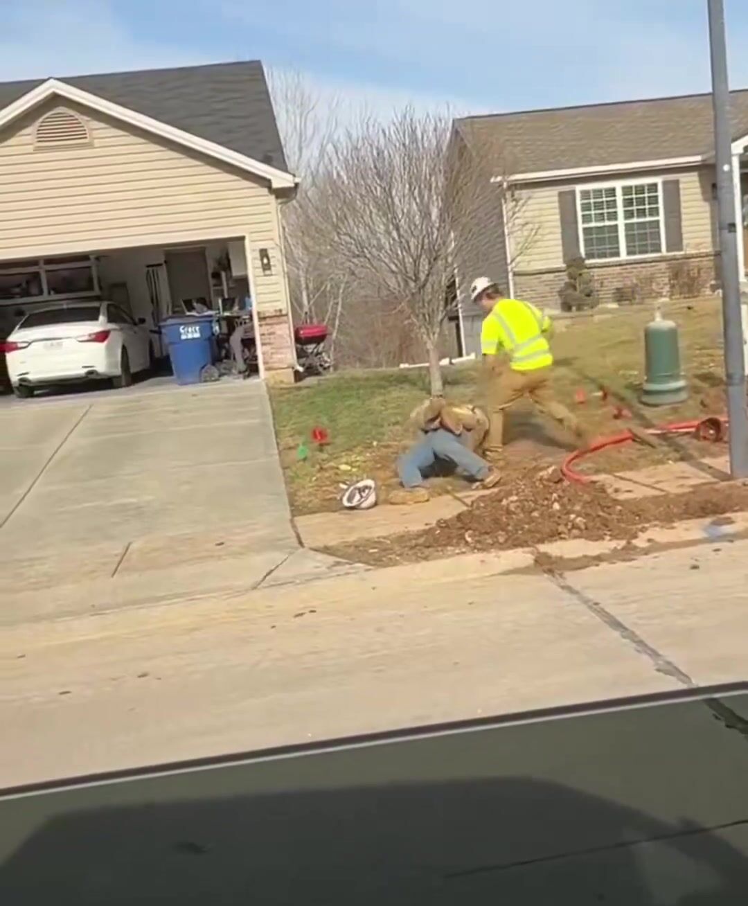 Neighbors in the St. Charles subdivision say Thursday afternoon several workers were laying down fiber optic cables on Jaxson Drive when out of the blue, fists flew.