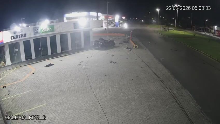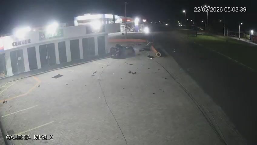 The vehicle went up onto the median, overturned, hit a power pole, and collided with the structure of a shopping center near the avenue.