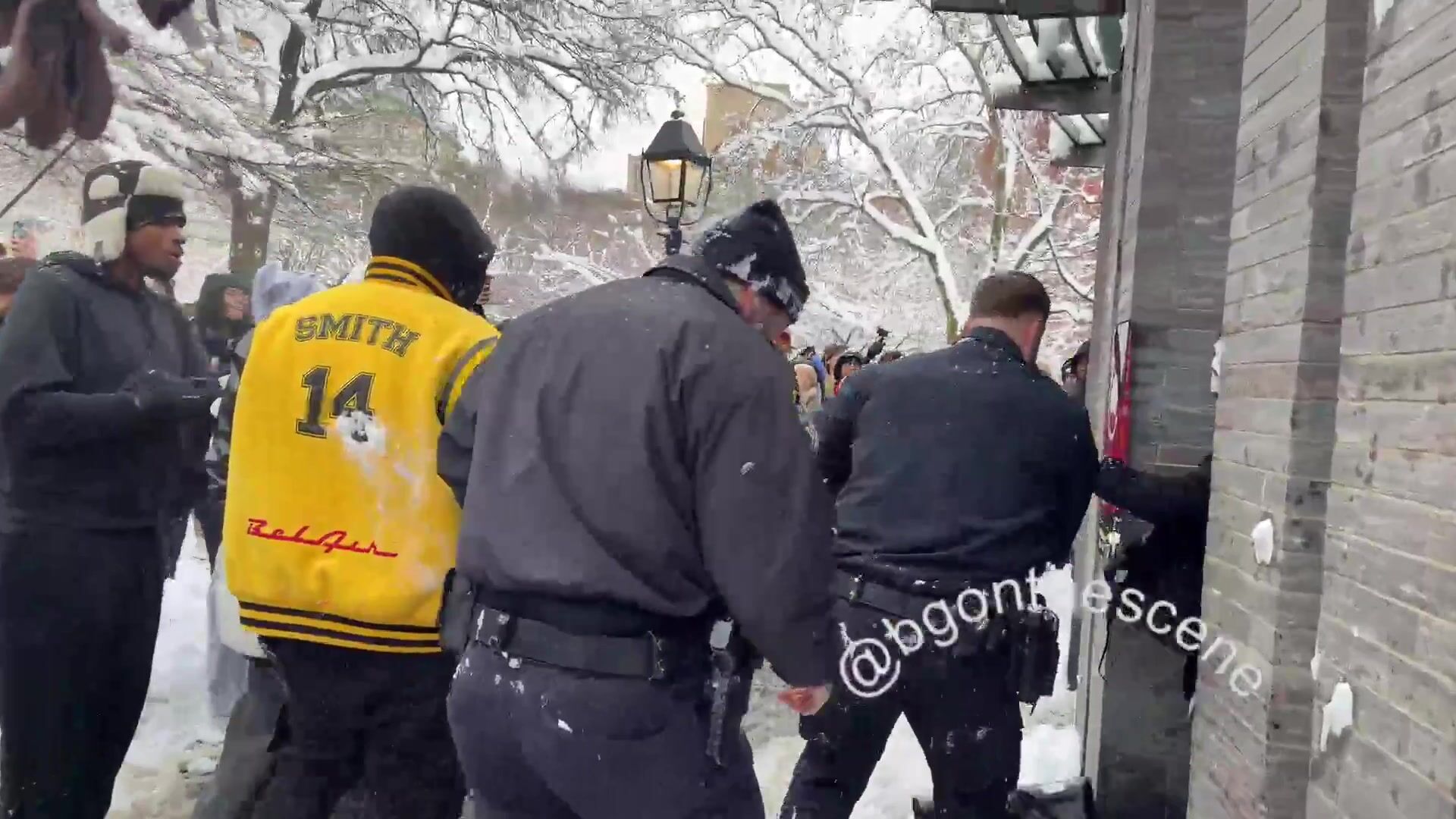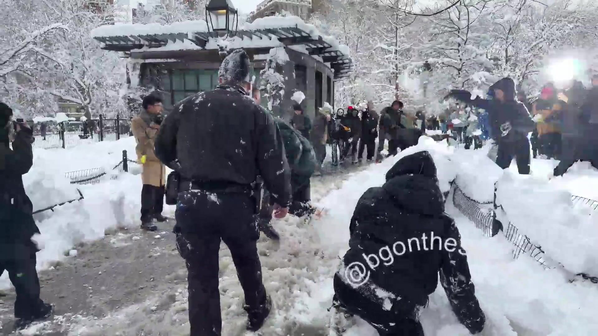 NYPD officers getting hit with snowballs in Washington Square Park this afternoon. This is shameful