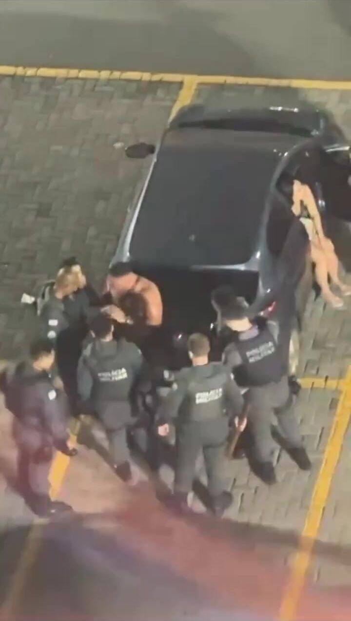 Soldier arrested after assaulting a woman, also a police officer, and other police officers in a supermarket parking lot in Vitória; see VIDEO.