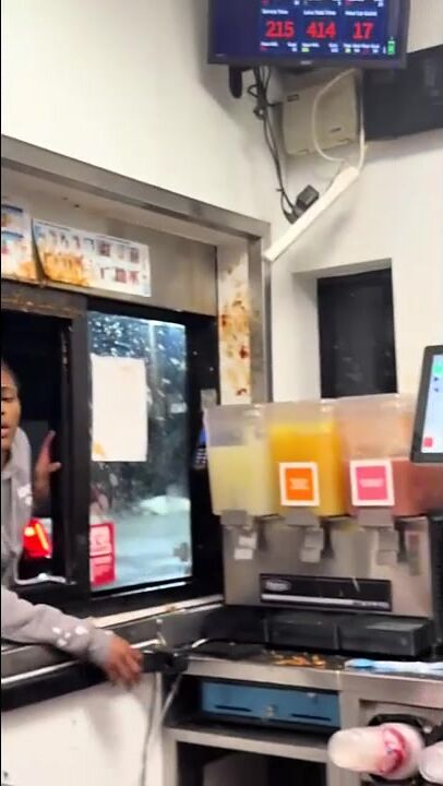 Multiple women jump out of their car, march up to the window, and kick it open. Within seconds, they’re leaning halfway inside, screaming, cursing, and launching drinks, ice, and condiments at the employees.