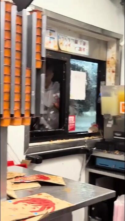 Full crash out at Wendy’s — drive-thru window kicked open as total chaos erupts